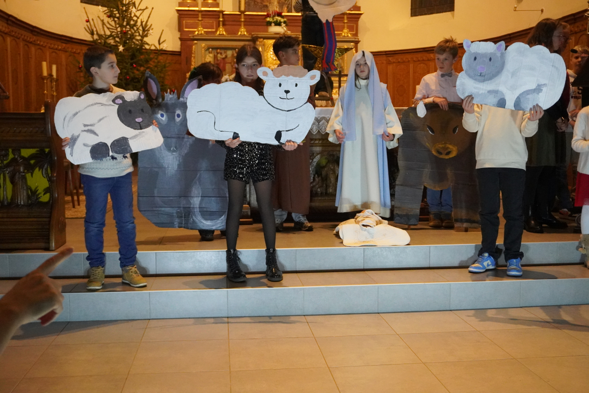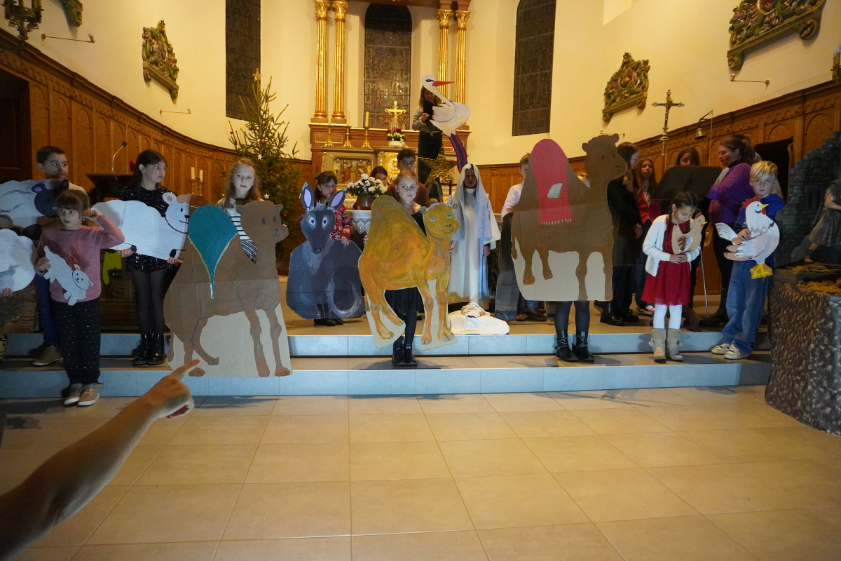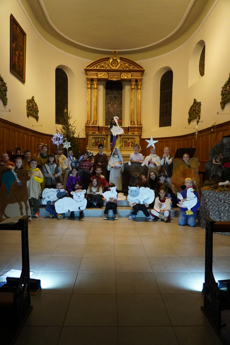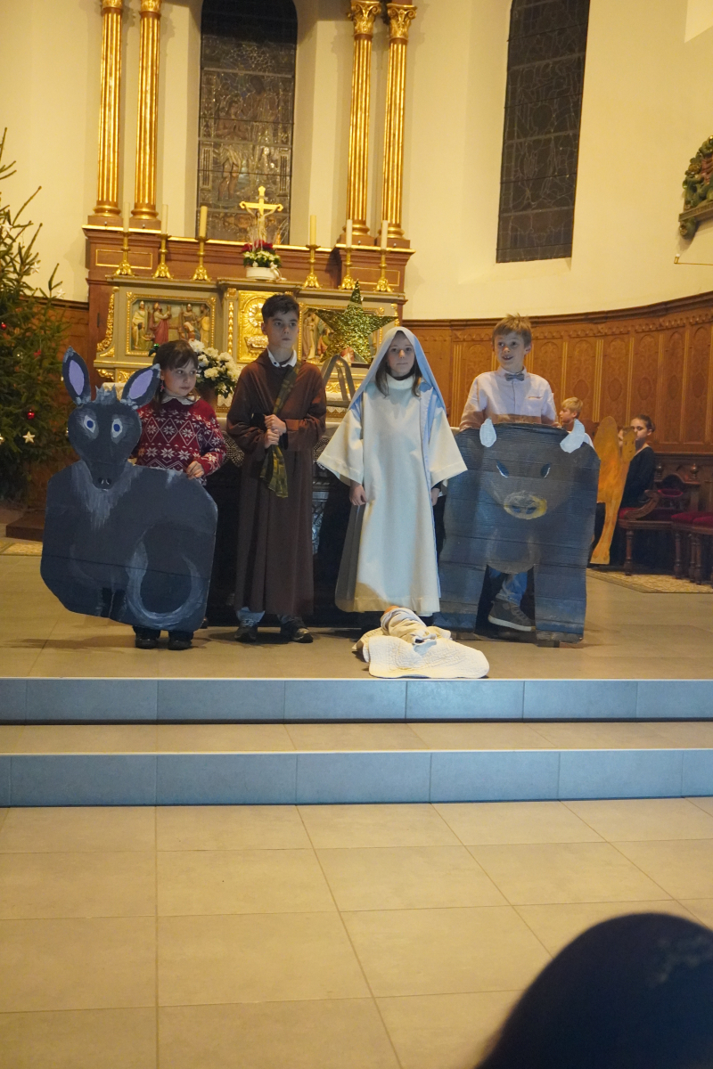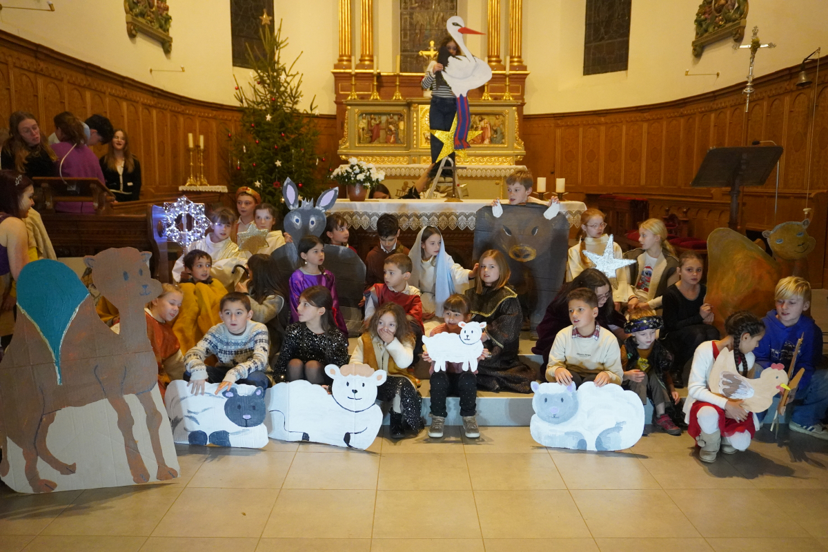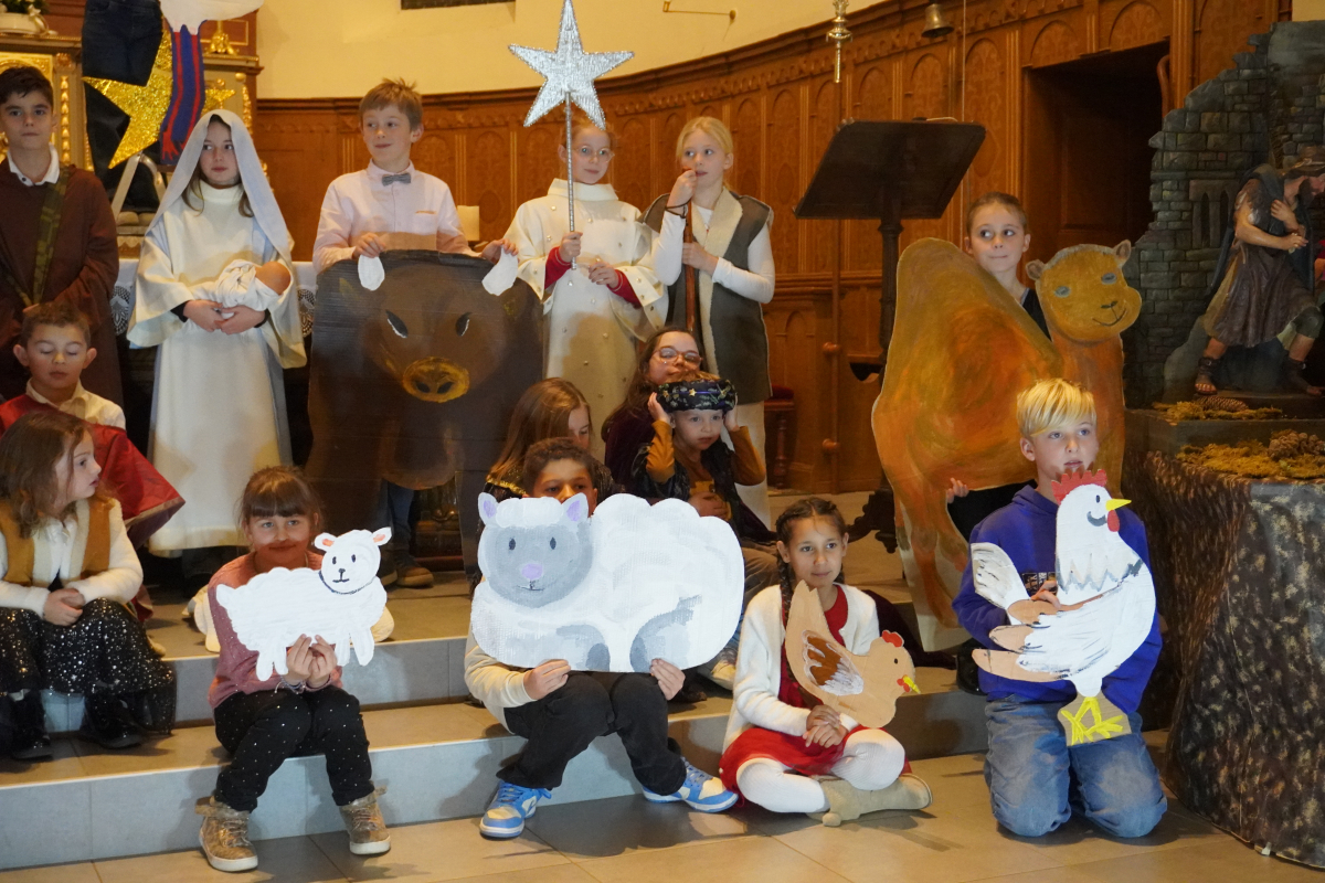 Pour la Veillée de Noël, ils ont mis en scène une histoire sur les animaux de la crèche, puis ils ont réalisé une crèche vivante pendant la lecture de l'Évangile de la Nativité.