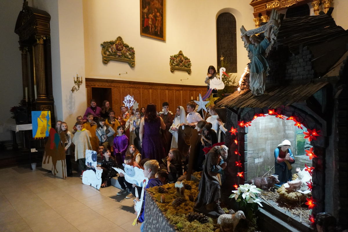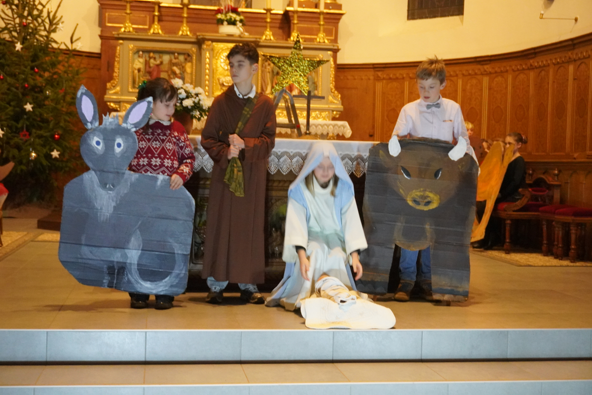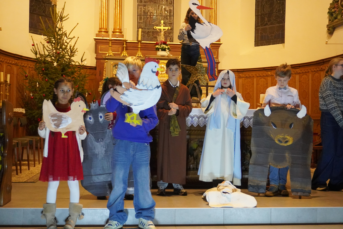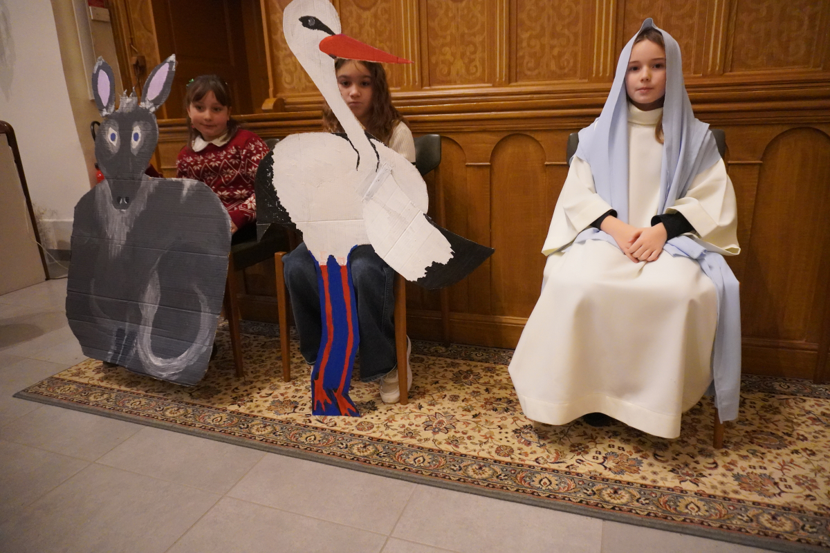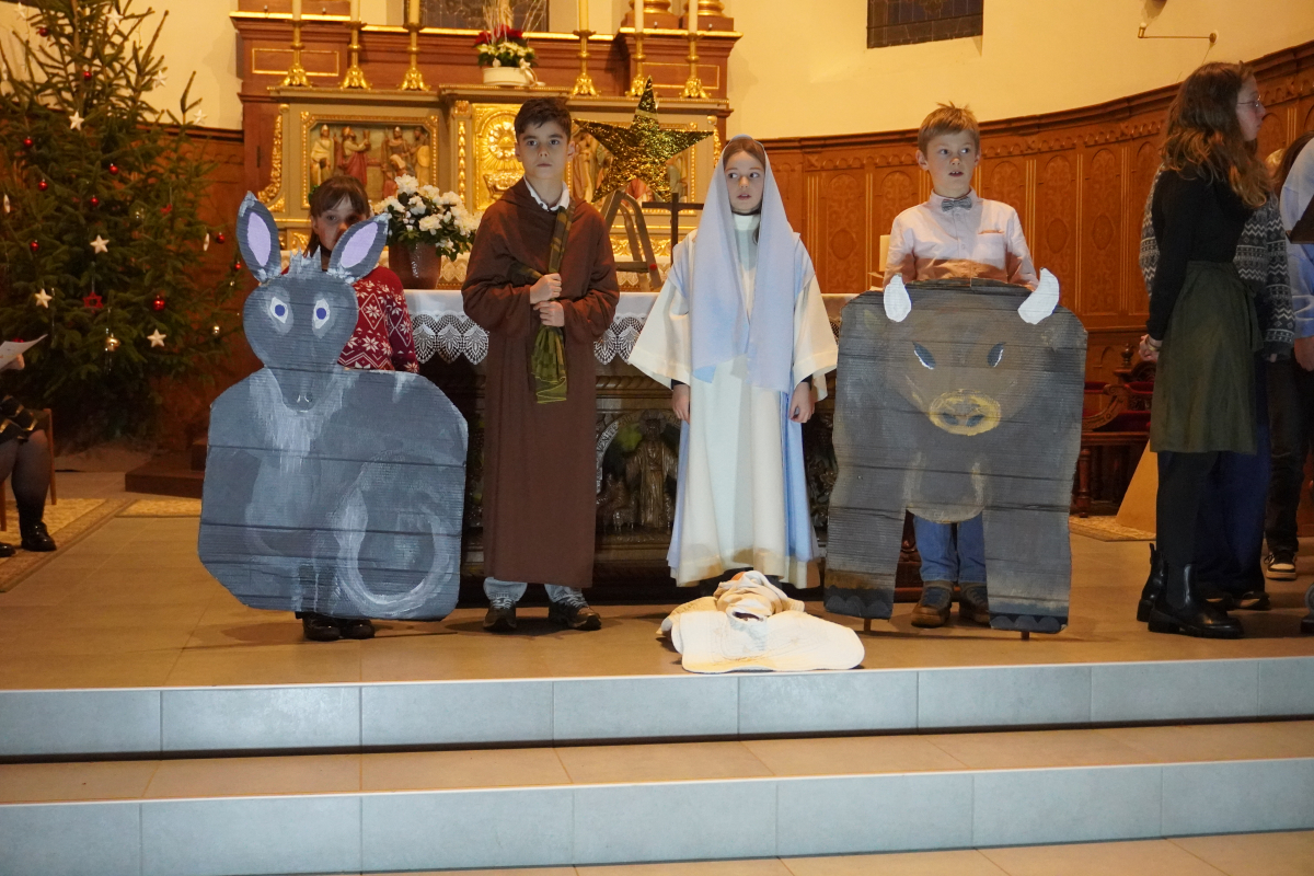 Pour la Veillée de Noël, ils ont mis en scène une histoire sur les animaux de la crèche, puis ils ont réalisé une crèche vivante pendant la lecture de l'Évangile de la Nativité.