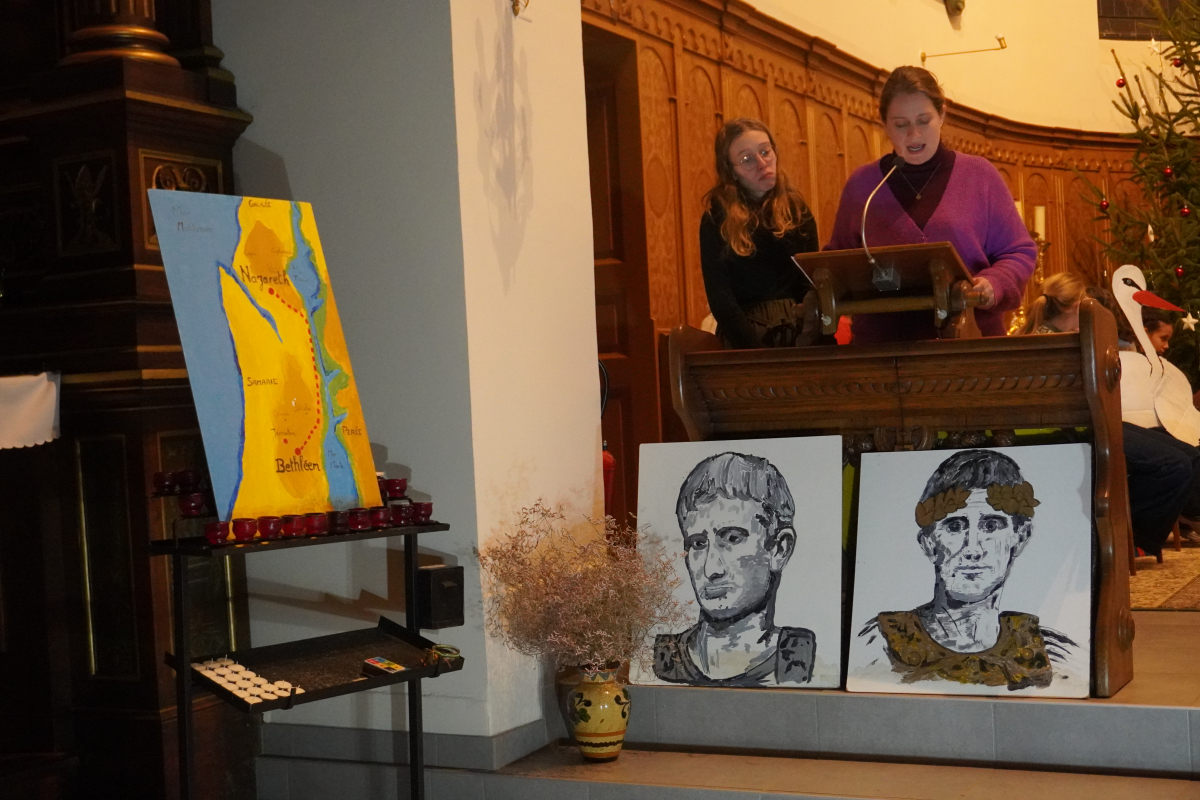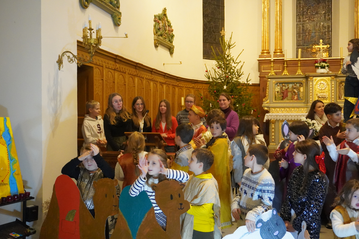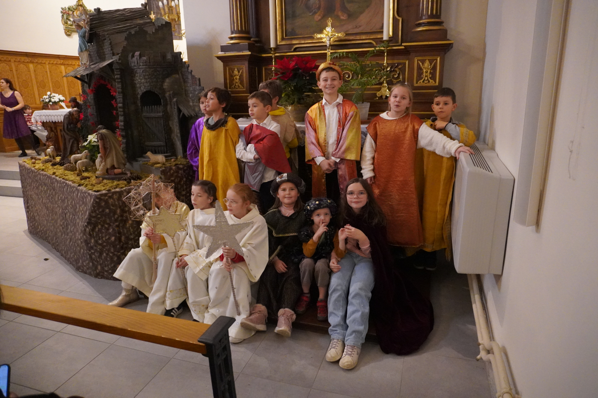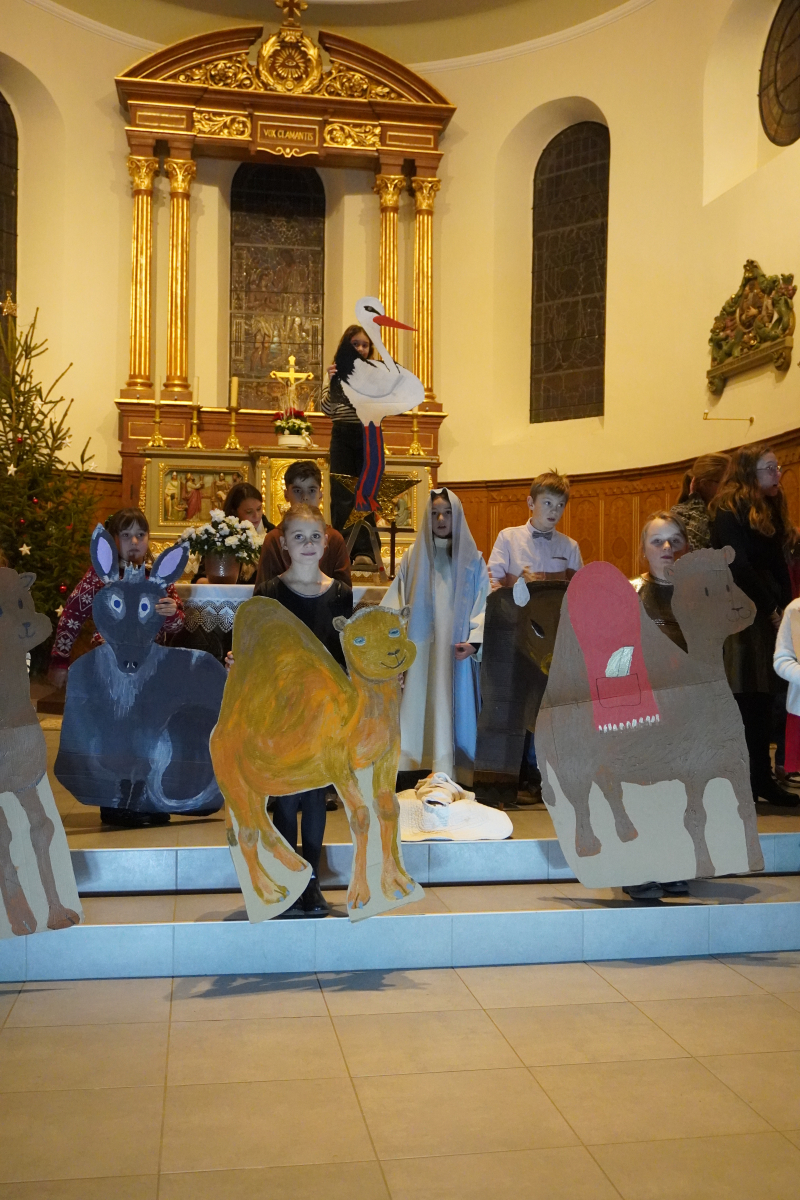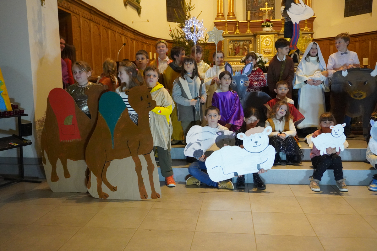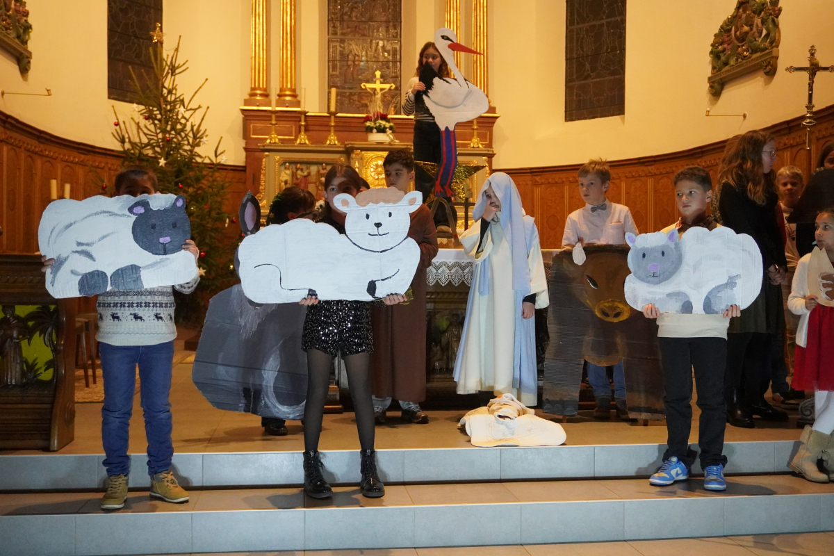 Pour la Veillée de Noël, ils ont mis en scène une histoire sur les animaux de la crèche, puis ils ont réalisé une crèche vivante pendant la lecture de l'Évangile de la Nativité.