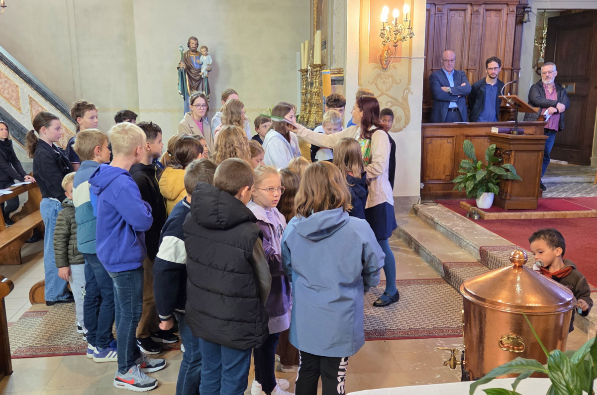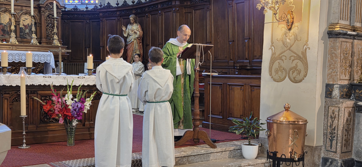 À l'occasion de cette célébration qui marque le début de l'année pastorale, Tom et Alexis ont reçu leur croix. Ce geste marque leur engagement et assiduité depuis plusieurs mois en temps que servants d'autel.