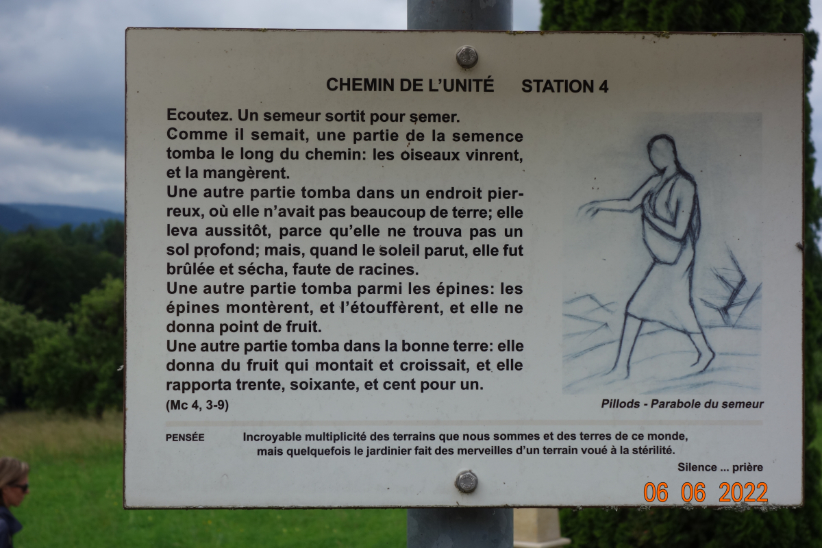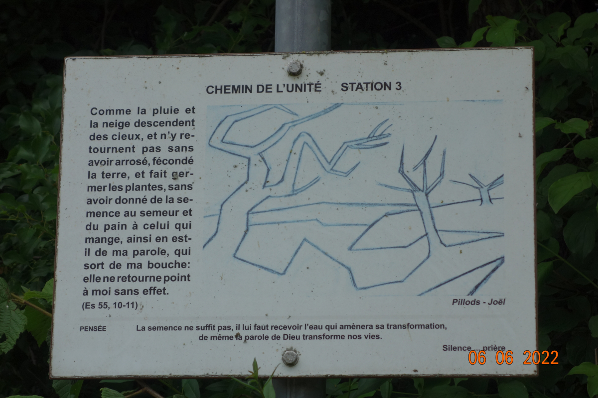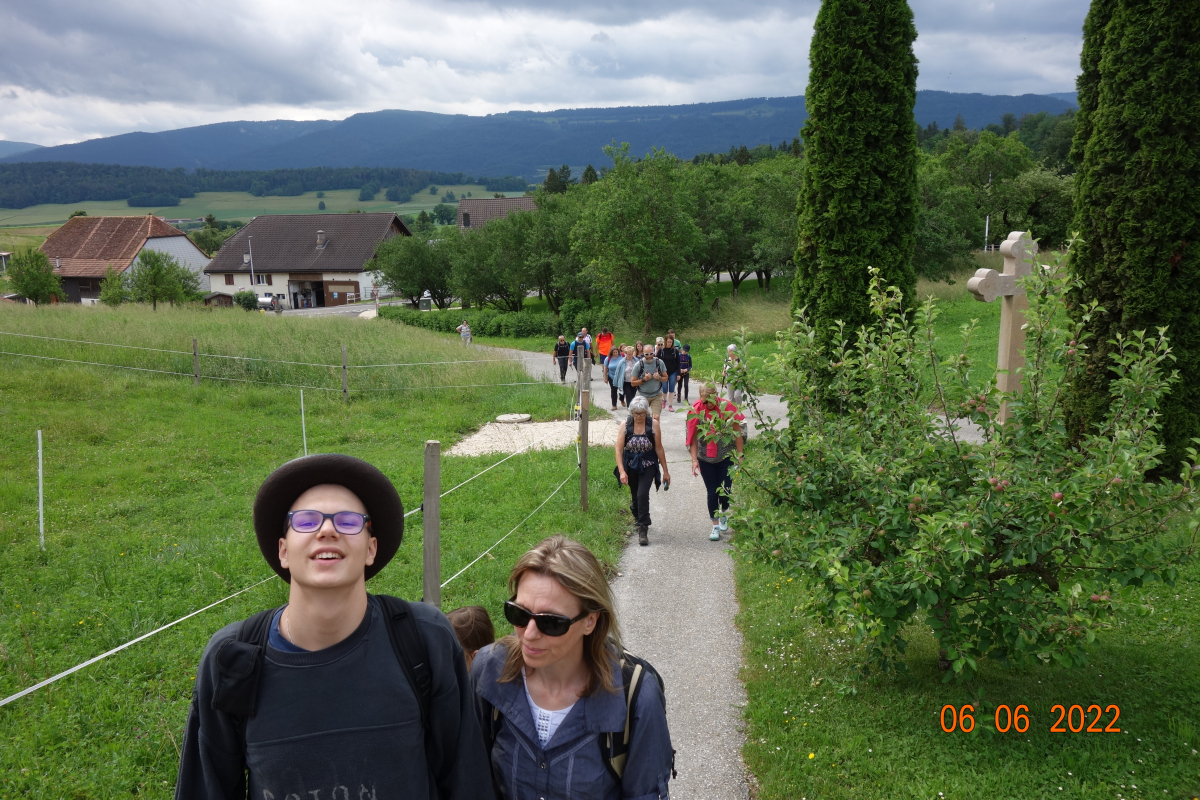 Le lundi de la Pentecôte, 6 juin 2022, une quarantaine de personnes (de 2 à 80 ans !) a parcouru le chemin de l'unité, à Develier, dans le Jura suisse, après avoir participé à la messe avec les soeurs carmélites du monastère Notre-Dame de l'Unité.