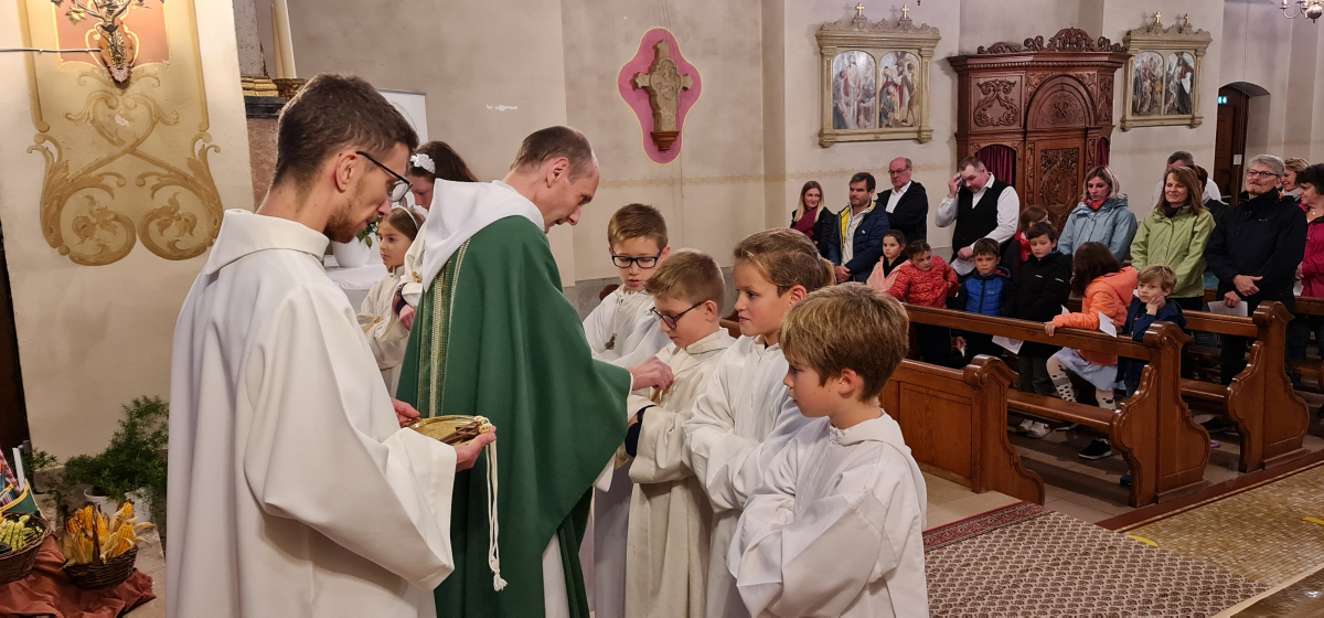 À cette occasion, ceux qui ont commencé à être servants de messe ont reçu la croix qu'ils porteront habituellement sur leur aube :