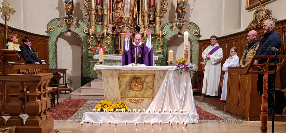 Au cours de la messe de la commémoration de tous les défunts, mercredi 2 novembre, nous nous sommes tout particulièrement souvenus de ceux de nos familles qui nous ont quittés, dans chacune des six paroisses, depuis la Toussaint de l’année dernière et pour qui une petite lumière a été allumée à celle du cierge pascal.