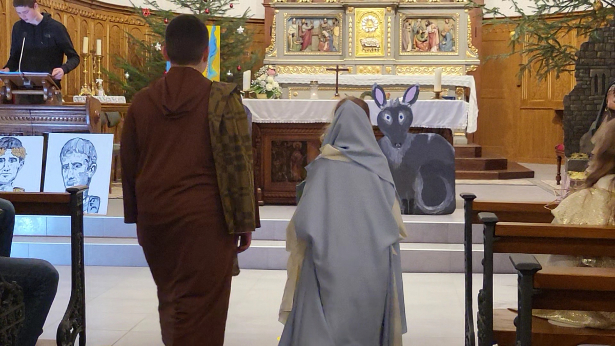 Puis à la lecture de l'Évangile, la naissance de Jésus, le plus grand artisan de paix, a été mimée sous la forme d'une crèche vivante.