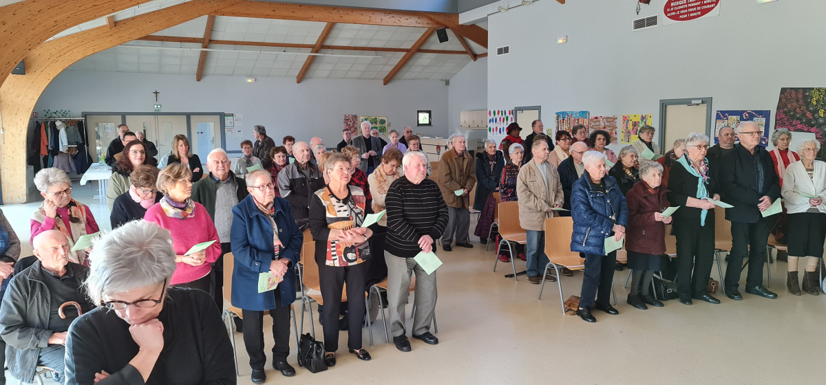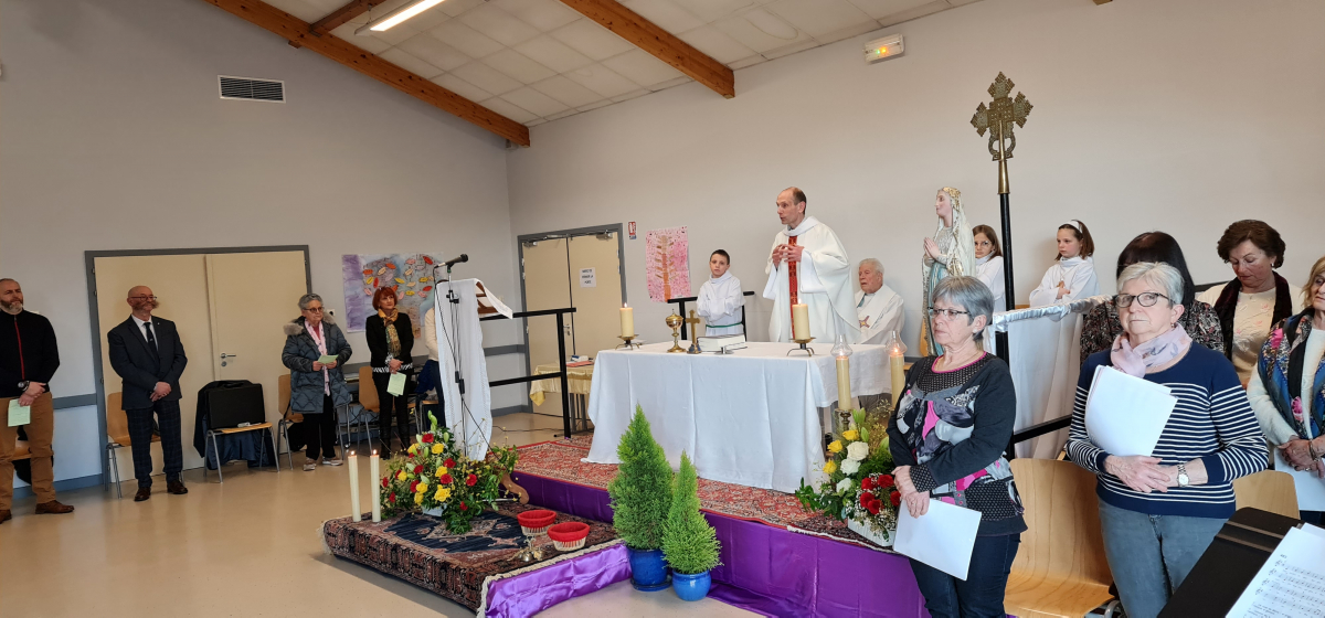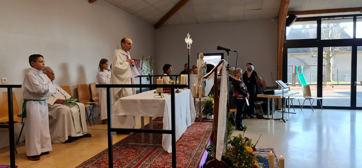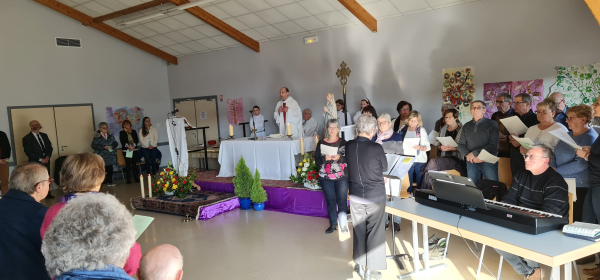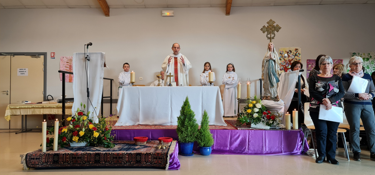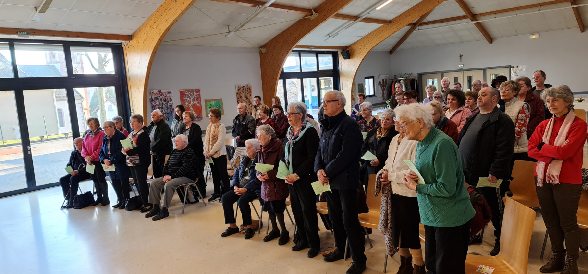 Le 12 février, à l'occasion de la journée du malade, qui coïncide avec la fête de Notre-Dame de Lourdes, les personnes âgées ou malades de notre communauté de paroisses ont eu du plaisir à se retrouver dans la salle communale de Steinsoultz, comme habituellement, avant la pandémie, pour la messe au cours de laquelle plusieurs d'entre elles ont été touchées de recevoir le sacrement de l'onction des malades qui les a fortifiées et encouragées dans leur faiblesse.