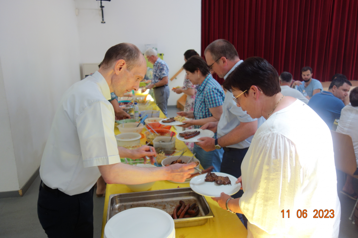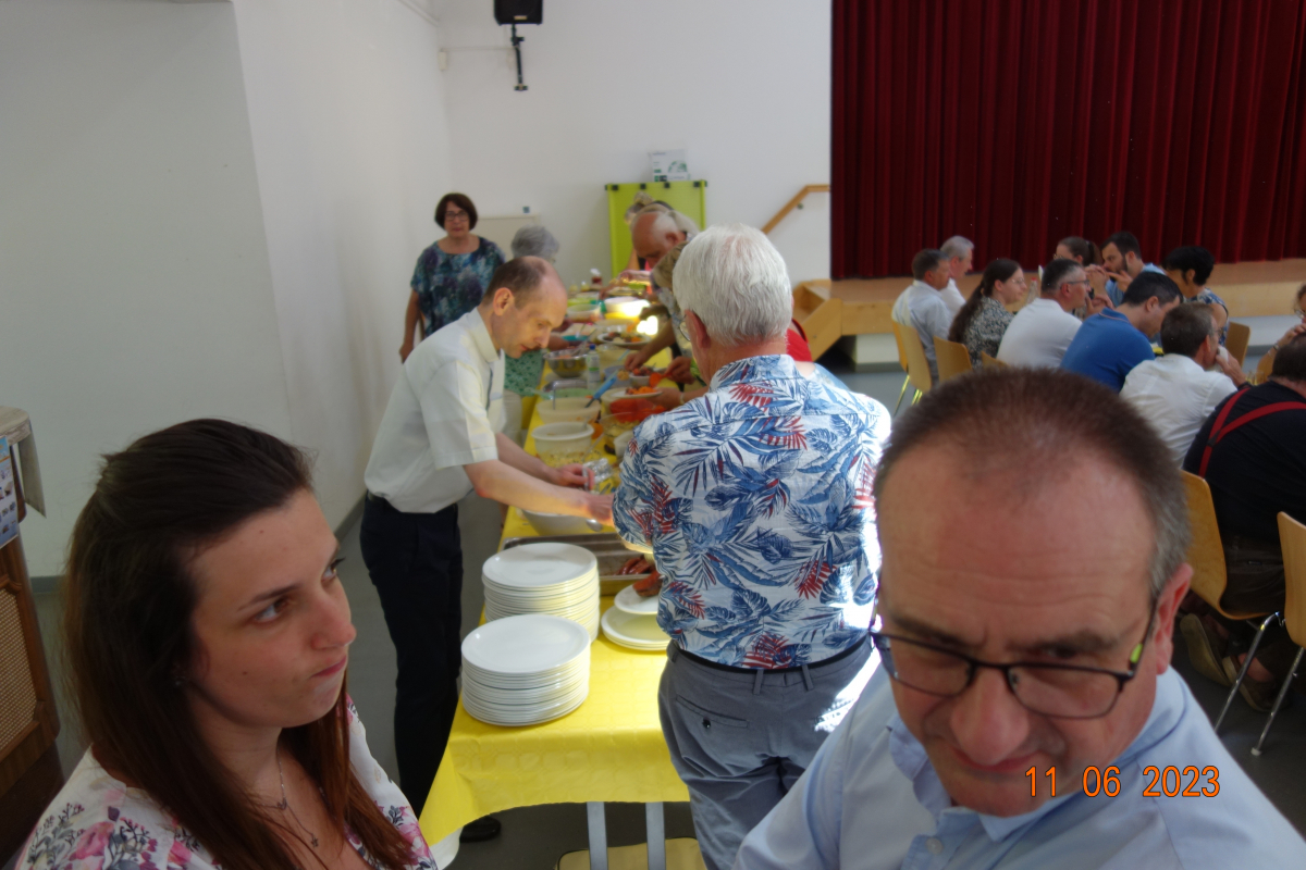 À l'issue de la messe et de la procession, les personnes actives tout le long de l'année dans les différentes paroisses ont été invitées à se retrouver pour le repas. Nombre d'entre elles ont répondu présent et ont visiblement été heureuses de ce moment convivial !