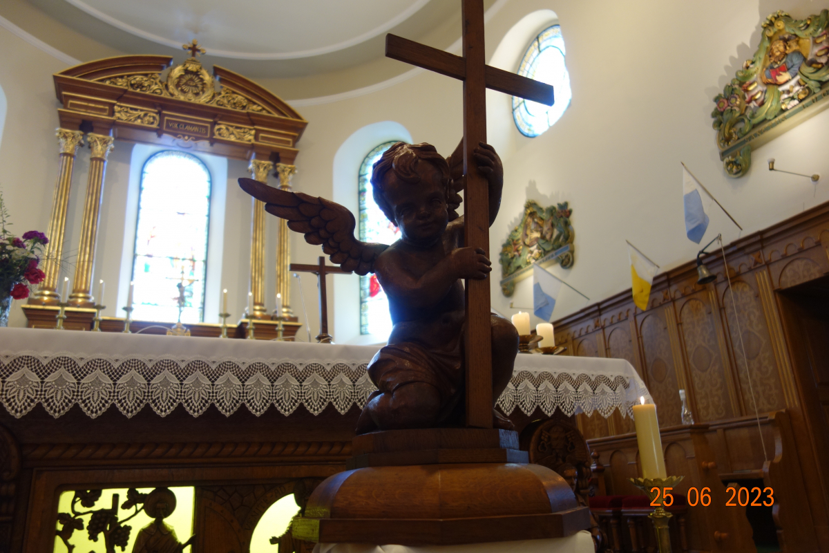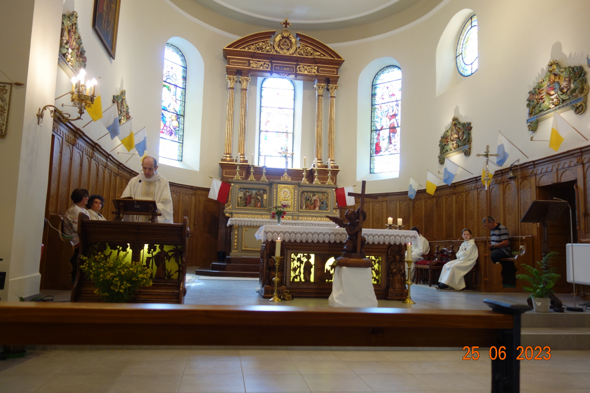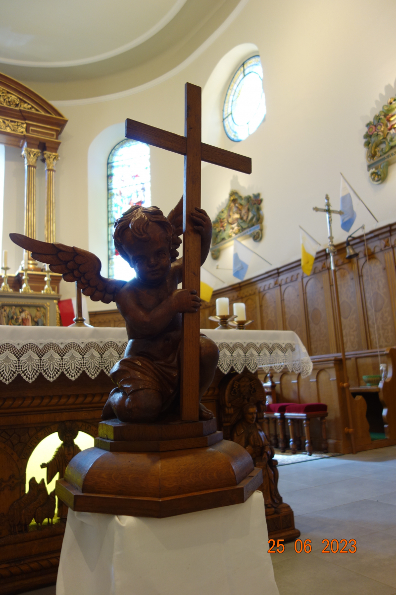 La fête patronale a été le moment le plus approprié pour présenter "l'angelot à la croix" à la communauté paroissiale de Roppentzwiller. Sa future destination sera située au sommet du buffet de l'orgue de l'église.
