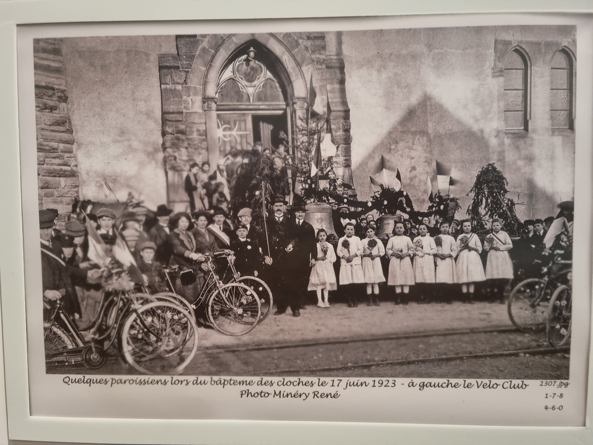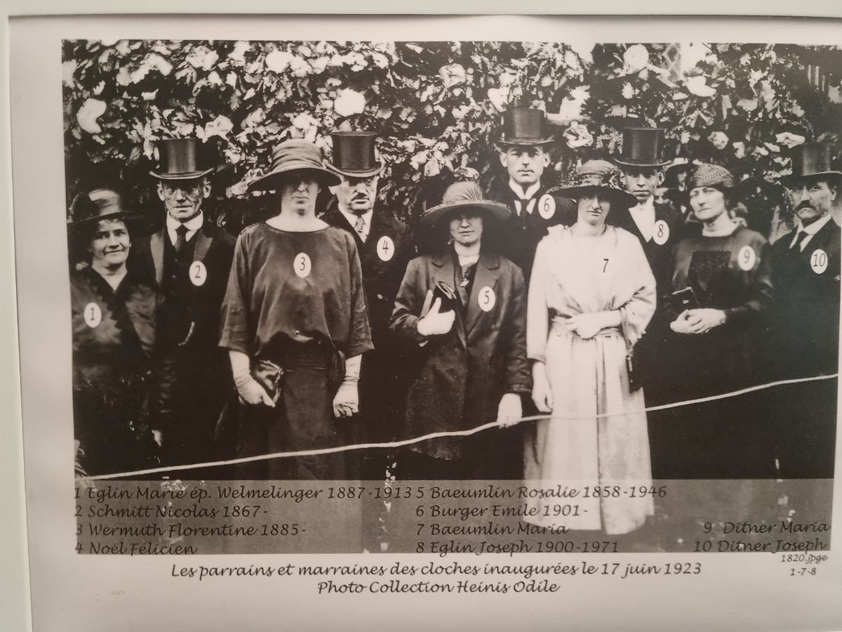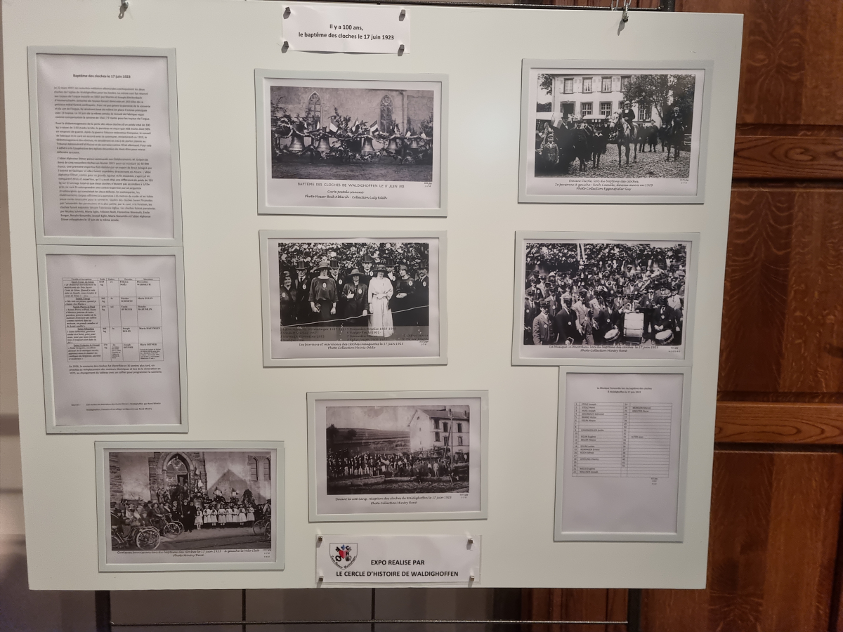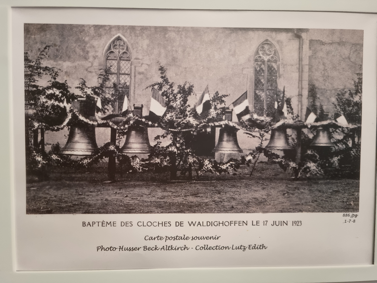 Ce dimanche 2 juillet 2023, la paroisse de Waldighoffen célébrait sa fête patronale, ainsi que le centenaire du baptême de ses cinq cloches, le 17 juin 1923. A cette occasion, le cercle d'histoire a mis en place un panneau illustrant et relatant l'histoire mouvementée de ces cloches. Ce panneau restera visible tout l'été pour les touristes de passage. Un grand merci à Joseph et Bernadette pour leur contribution.