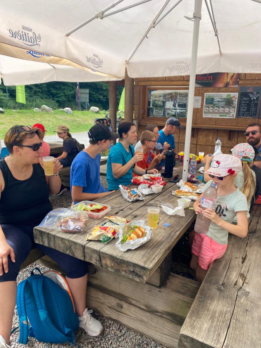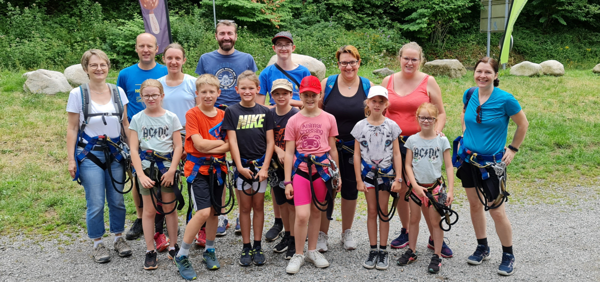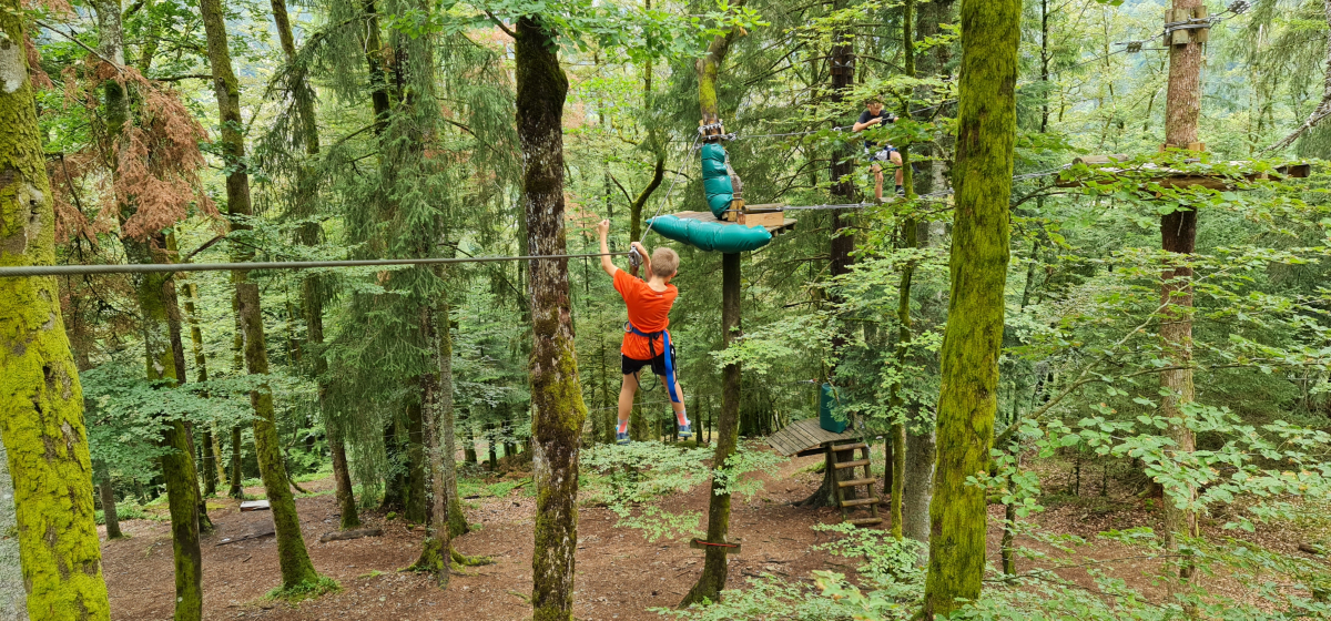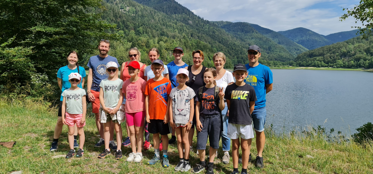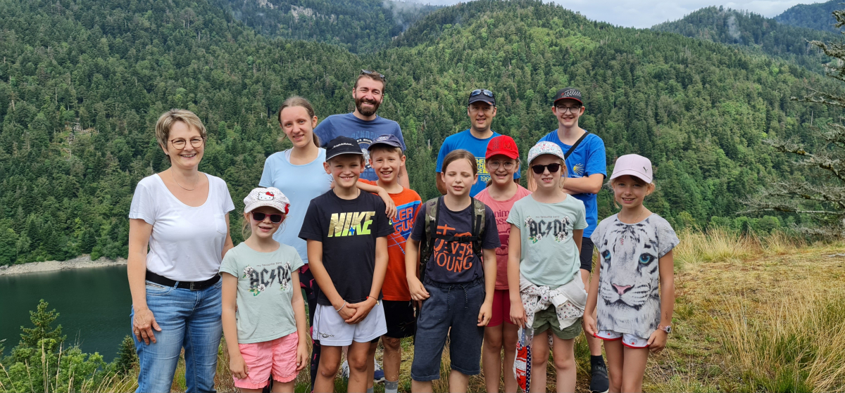 Le 8 juillet 2023, par une belle journée ensoleillée qui débuta par une visite de la chapelle Notre-Dame du Bon Secours d'Oderen, nous avons pris le déjeuner tiré du sac au bord du lac; puis petits et grands prirent tous plaisir à grimper aux arbres sur le site de l'accrobranche à Kruth.