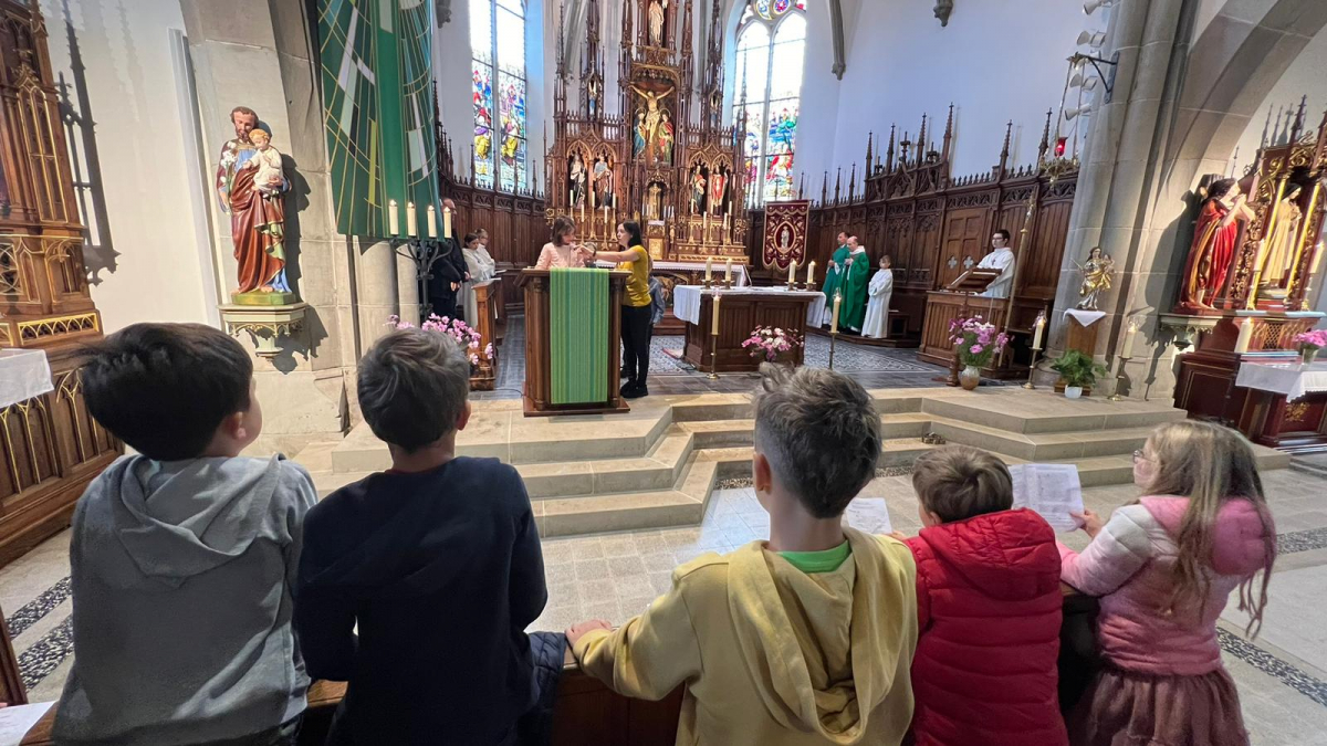 Les enfants et leurs parents se sont retrouvés pour échanger autour de l'Evangile du jour.