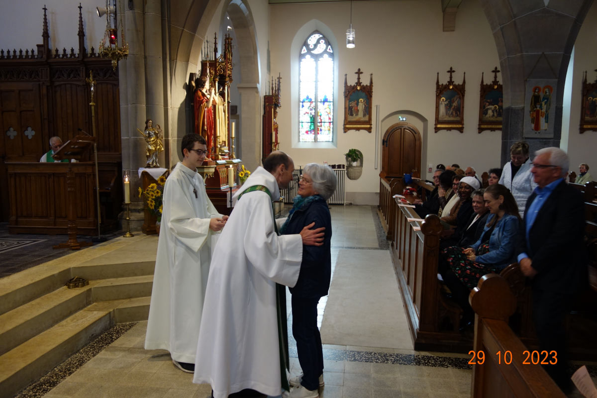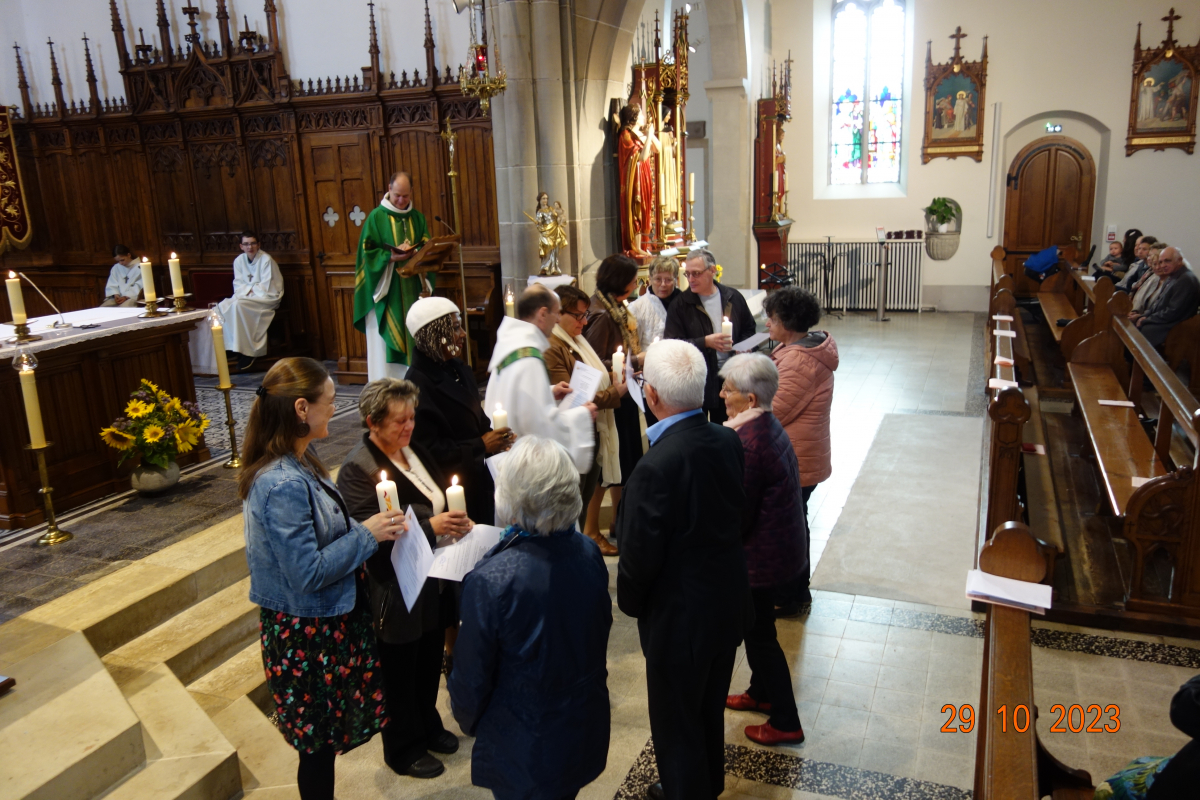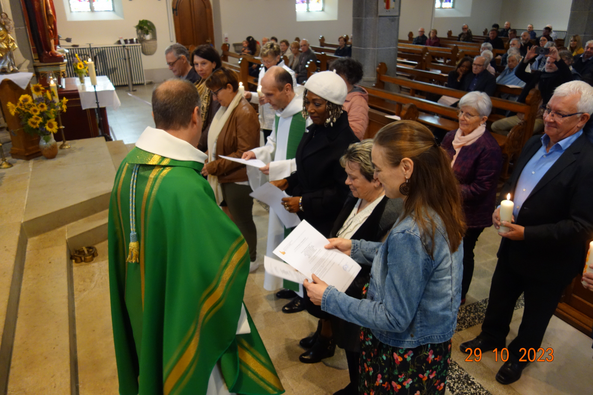 Dimanche 29 octobre 2023 a été une nouvelle étape dans la vie de la communauté de paroisses depuis sa reconnaissance en octobre 2012. Les six nouveaux membres de l’Equipe d’animation pastorale ont, en effet, reçu leur lettre de mission et ont été envoyés par le Chanoine Marc Schmitt, délégué de l’administrateur apostolique.