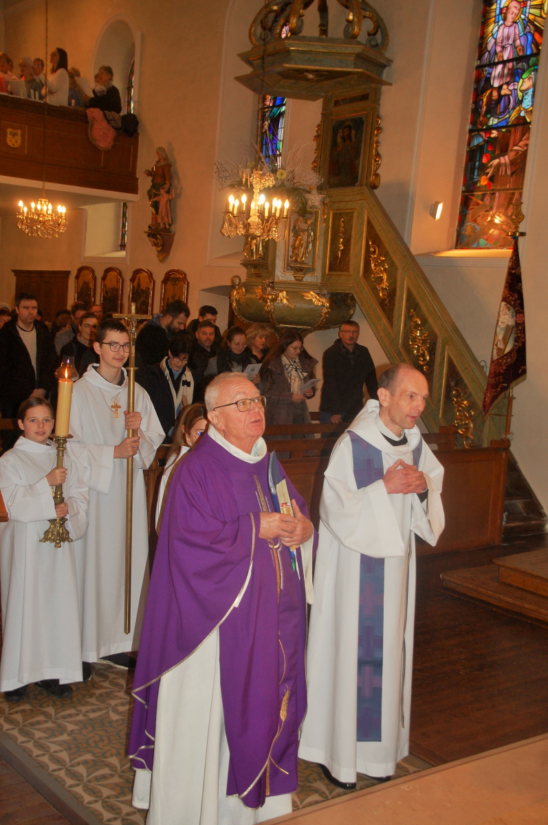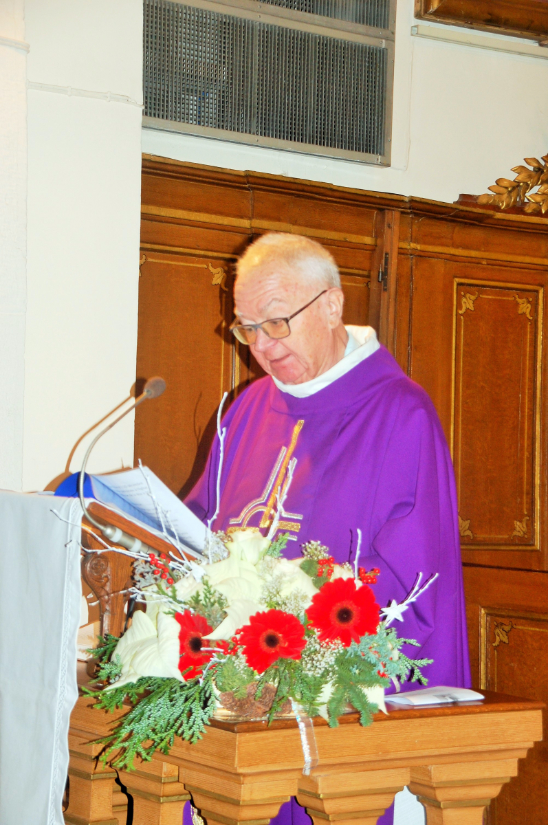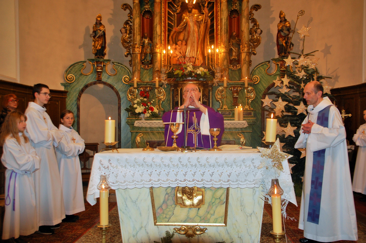 A l'occasion du 2e dimanche de l'Avent, elle a non seulement honoré son saint patron, saint Nicolas, mais elle a été heureuse aussi de fêter le jubilé d'or de l'Abbé André Mislin, un enfant du village, et de rendre grâce avec lui pour ses cinquante années de ministère, dans l'église où, après avoir été ordonné prêtre, le 1er juillet 1973, à la cathédrale de Strasbourg, il avait célébré sa première messe.