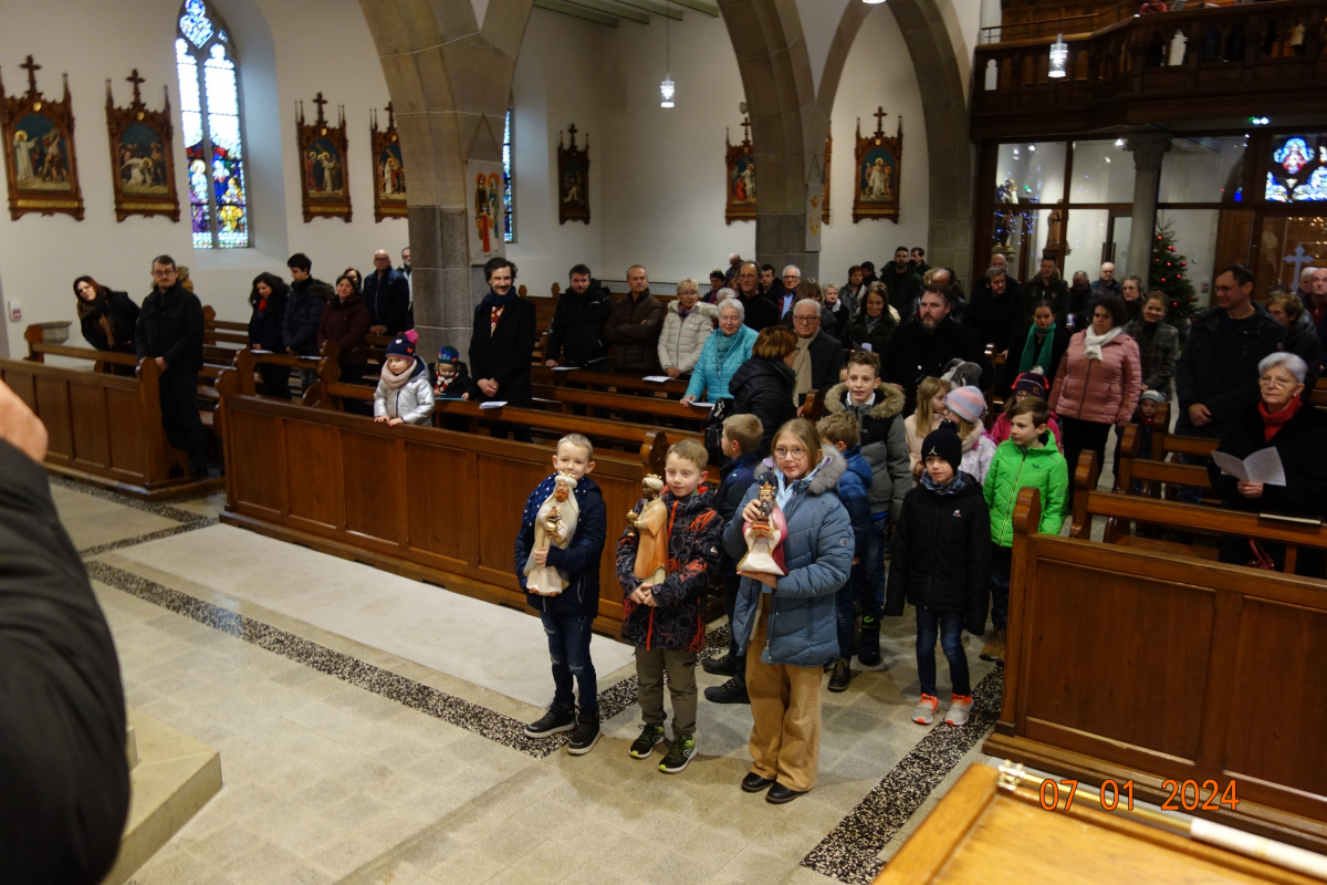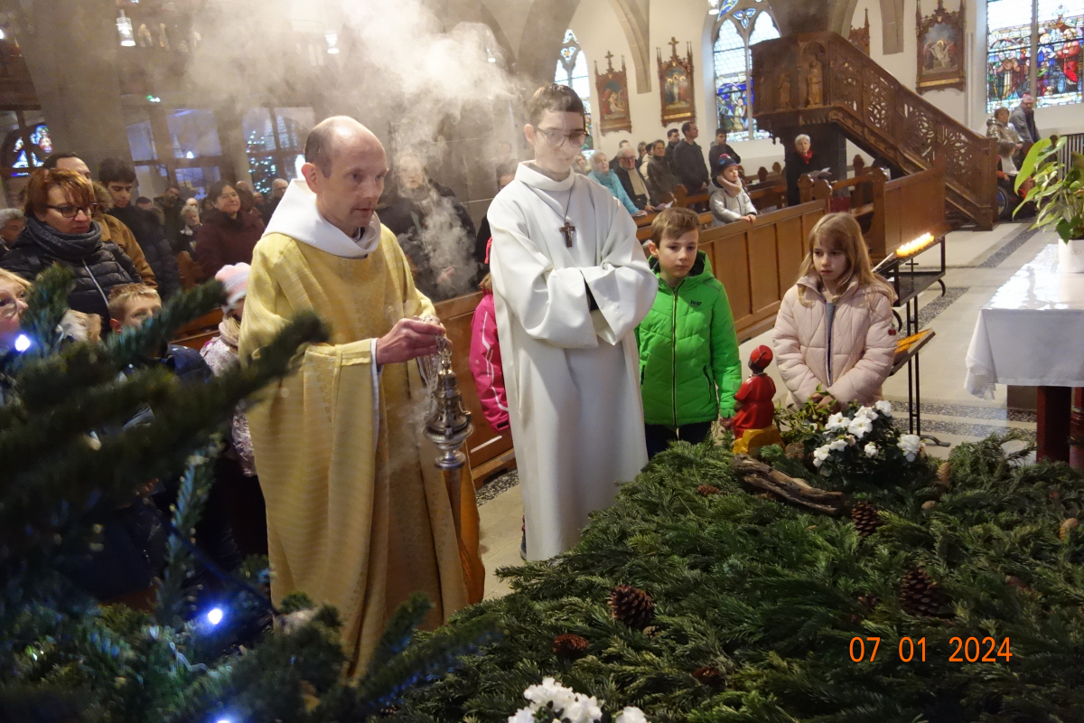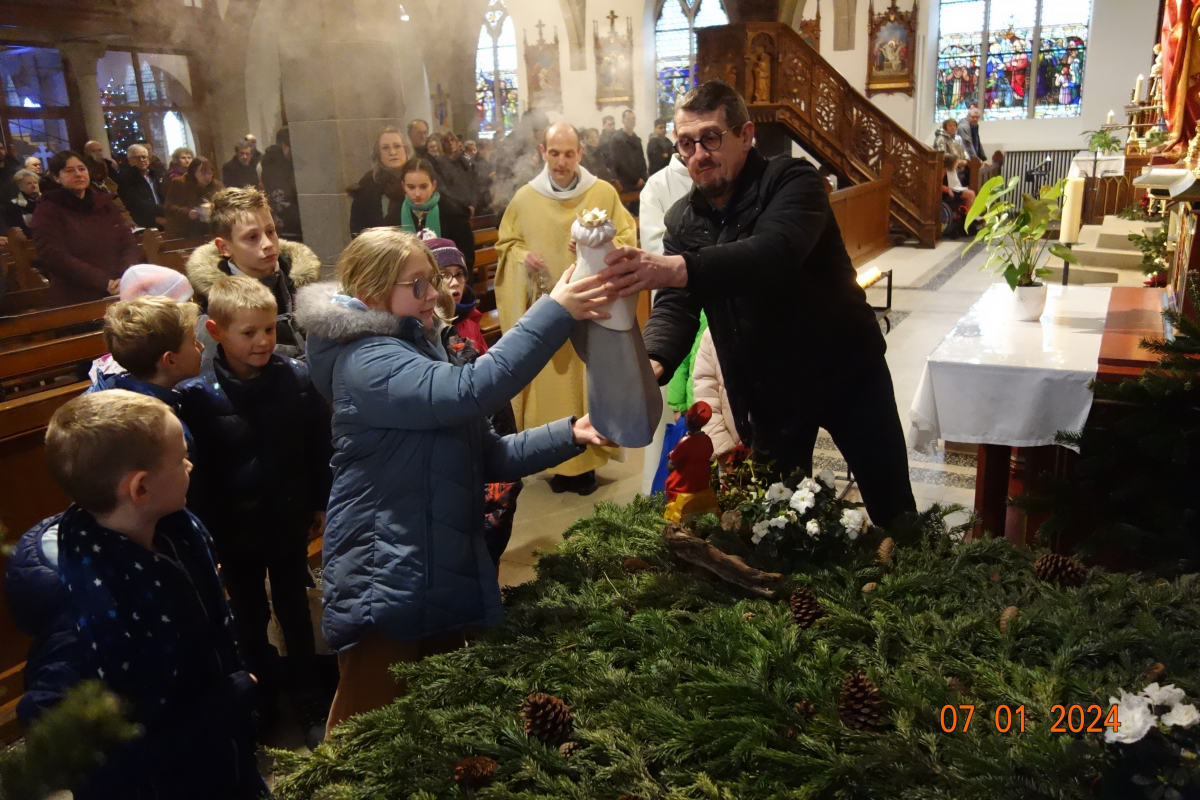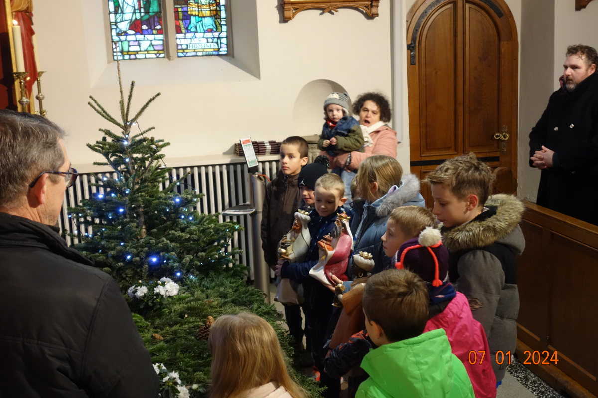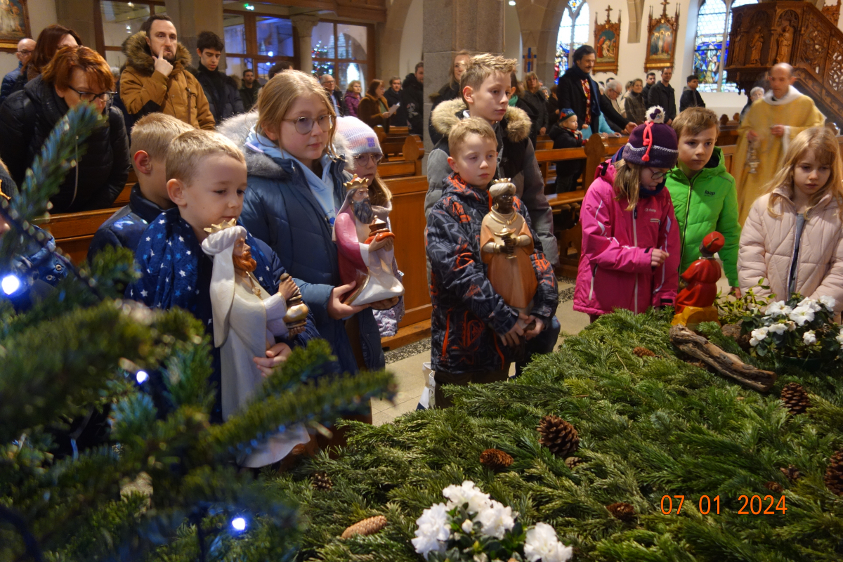 Ce sont trois jeunes en parcours vers la première communion qui ont été volontaires pour les conduire vers l'enfant Jésus.