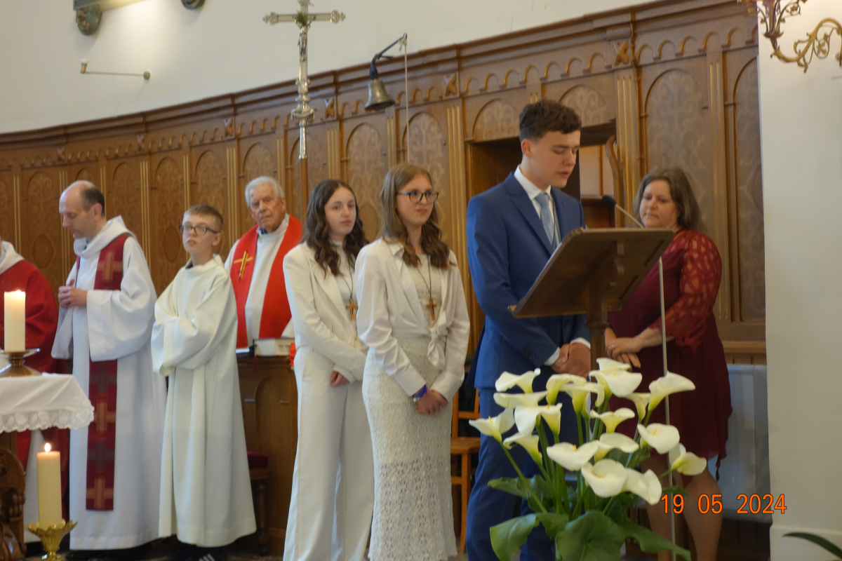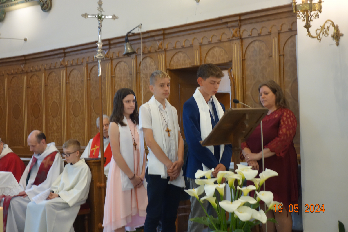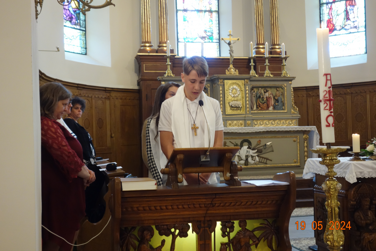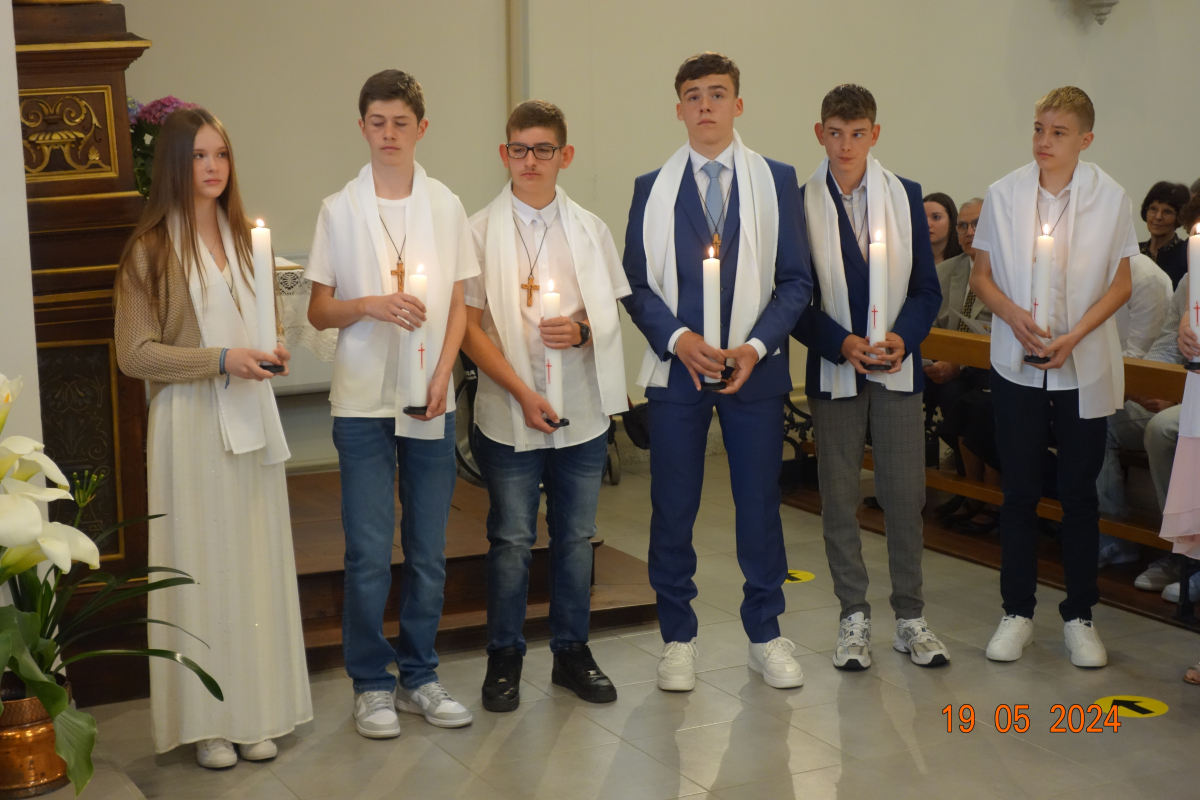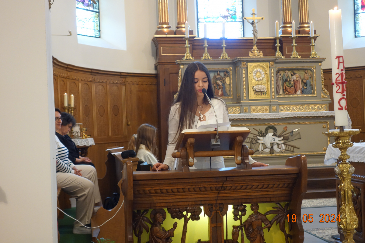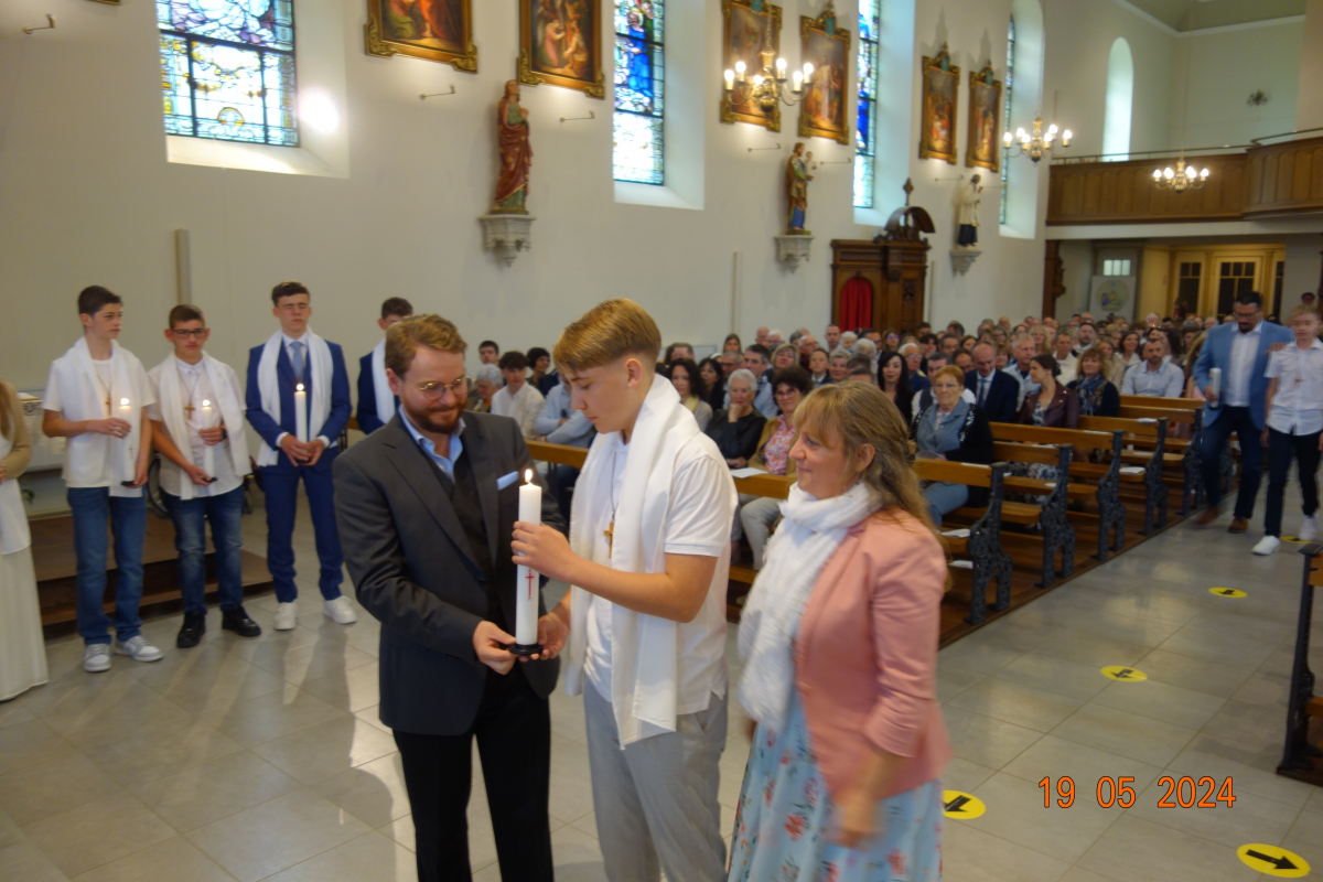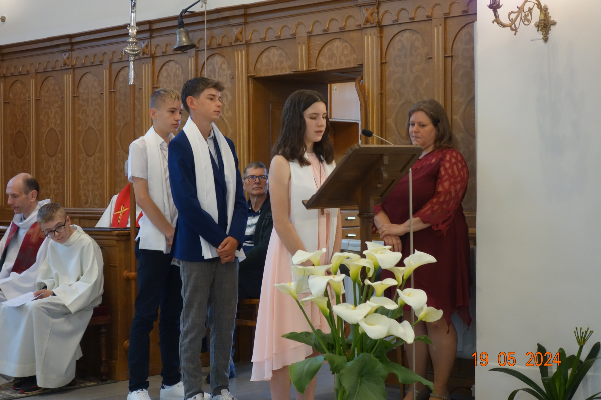 Après deux belles années de cheminement, 23 jeunes ont fait leur profession de foi et ont été confirmés, le dimanche de la Pentecôte, 19 mai 2024, par le Chanoine Hubert Schmitt.