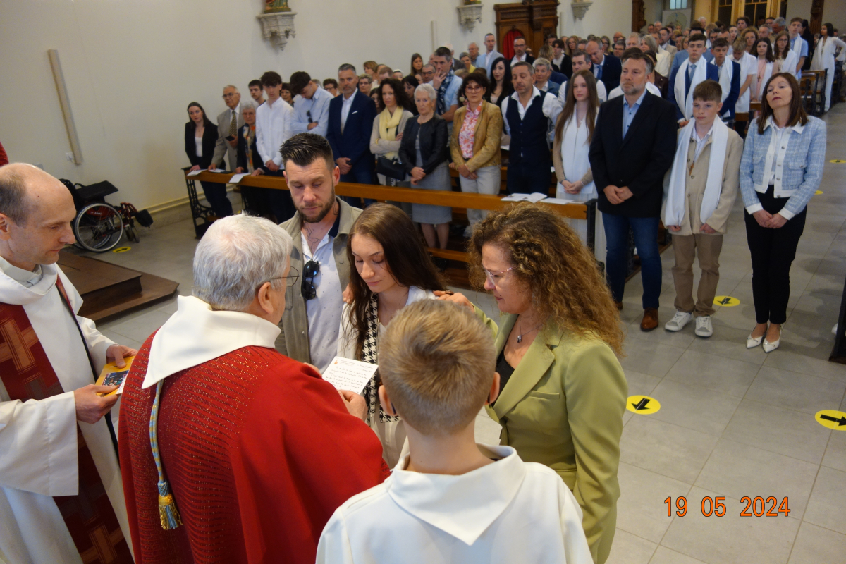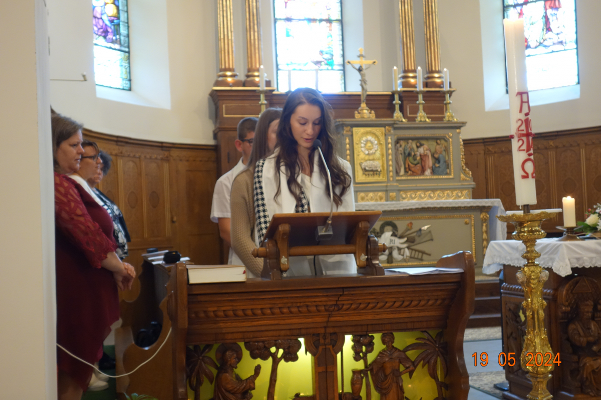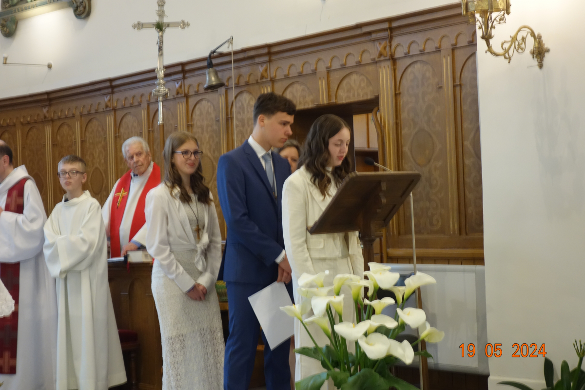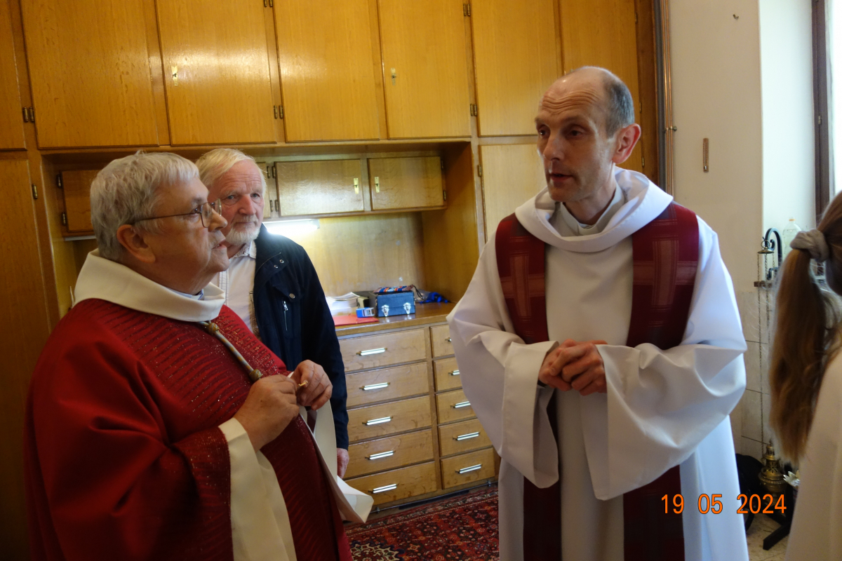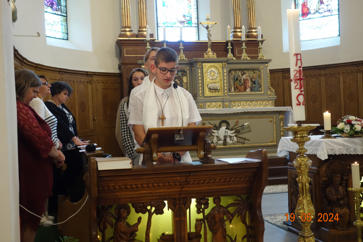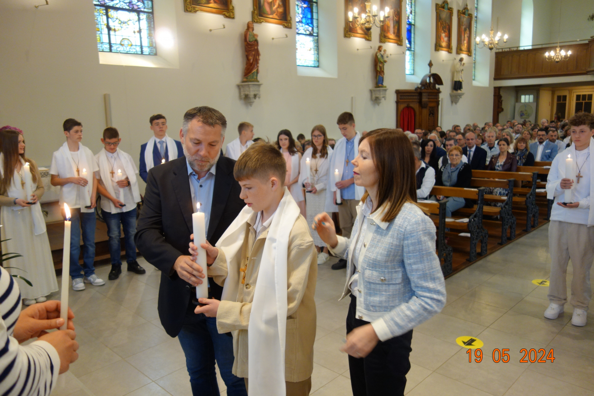 Après deux belles années de cheminement, 23 jeunes ont fait leur profession de foi et ont été confirmés, le dimanche de la Pentecôte, 19 mai 2024, par le Chanoine Hubert Schmitt.