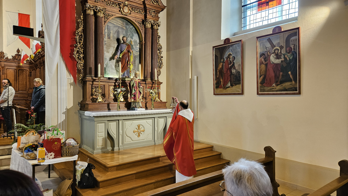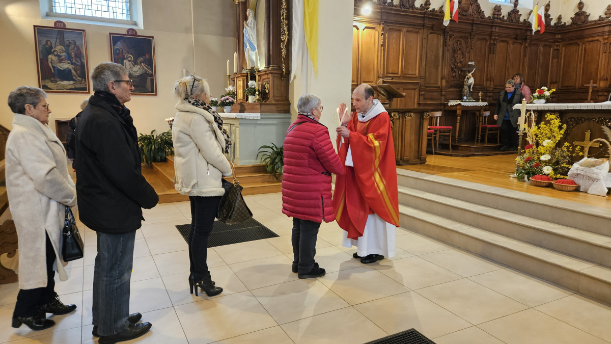 Une centaine de personnes se sont rassemblées à Muespach, dimanche 9 février, pour fêter St Baise, patron de la paroisse. La messe a été rehaussée par la chorale interparoissiale de la communauté de paroisse St Sébastien qui a intégrée "une messe" de Bruckner. Père Sébastien a remercié,en fin de messe, toutes les forces "vives" qui oeuvrent à longueur de mois pour l'accueil, la propreté et l'entretien de l'église. La messe s'est achevée par la bénédiction du pain selon la tradition de Ste Agathe et de la gorge selon St Blaise. Un verre de l'amitié a été proposé à toute l'assemblée à l'issu de cette cérémonie.
