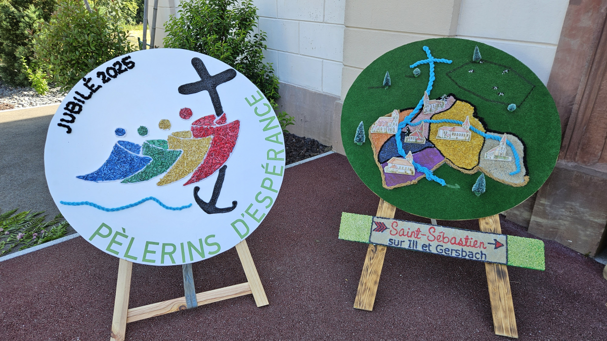 Trois reposoirs autour du thème "Pélerins d'éspérance" ont été réalisés par nos experts en fleurissement.