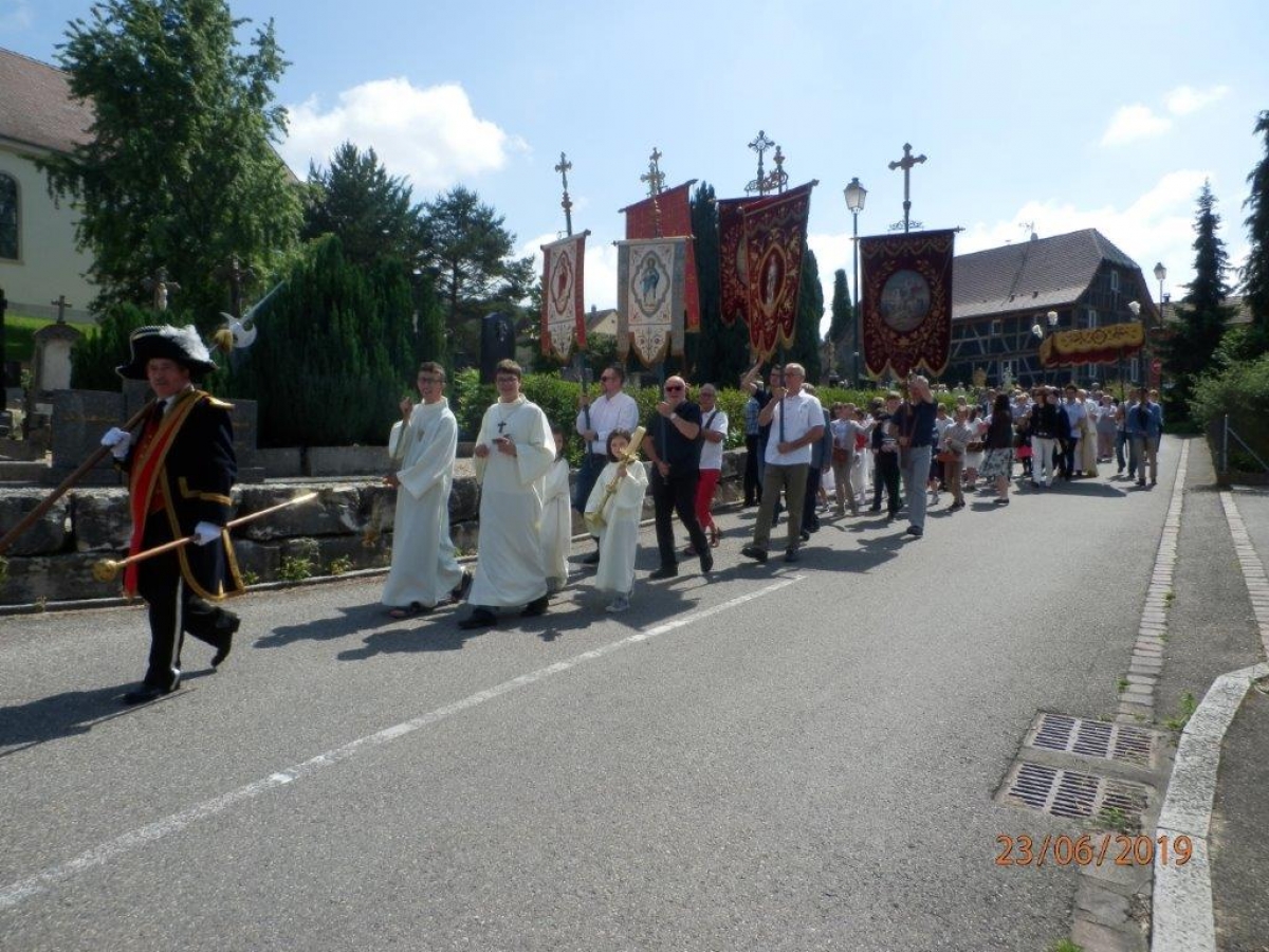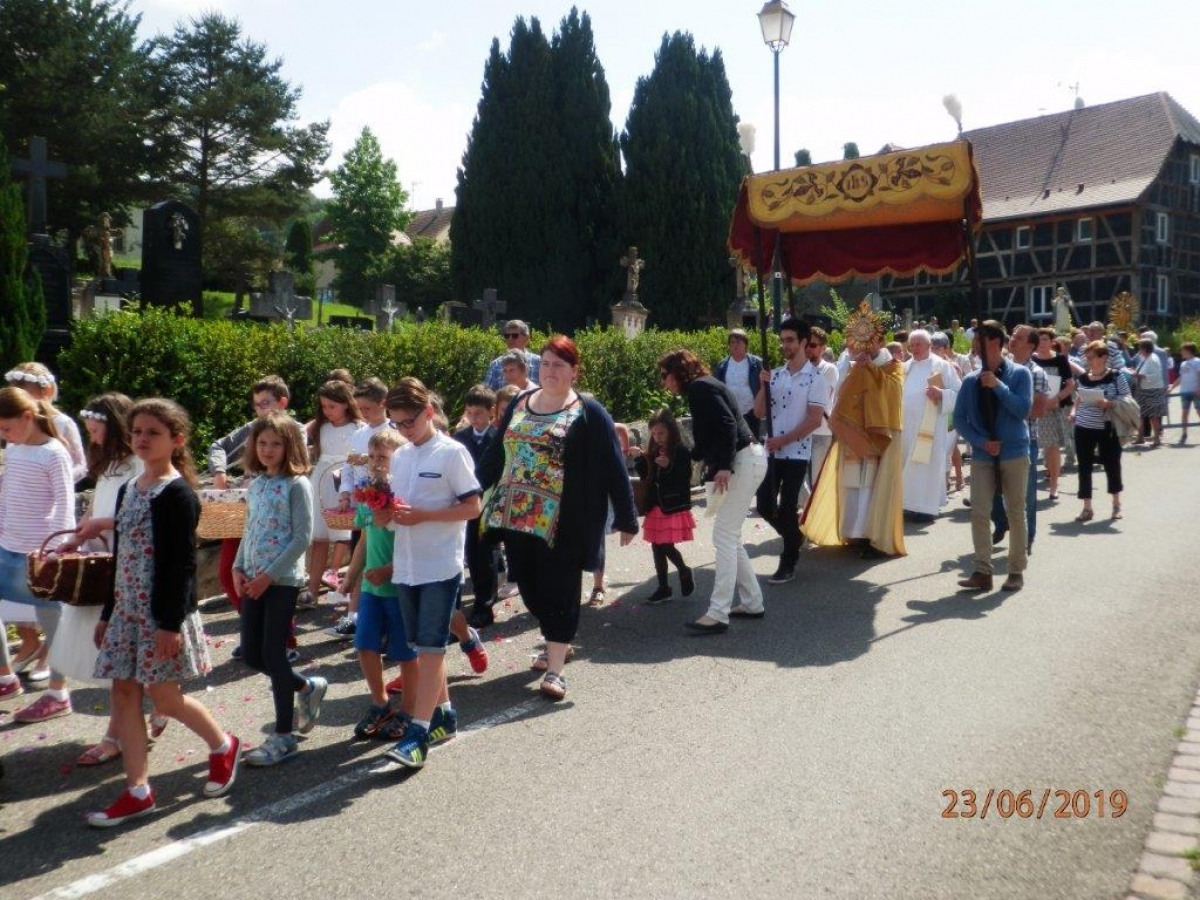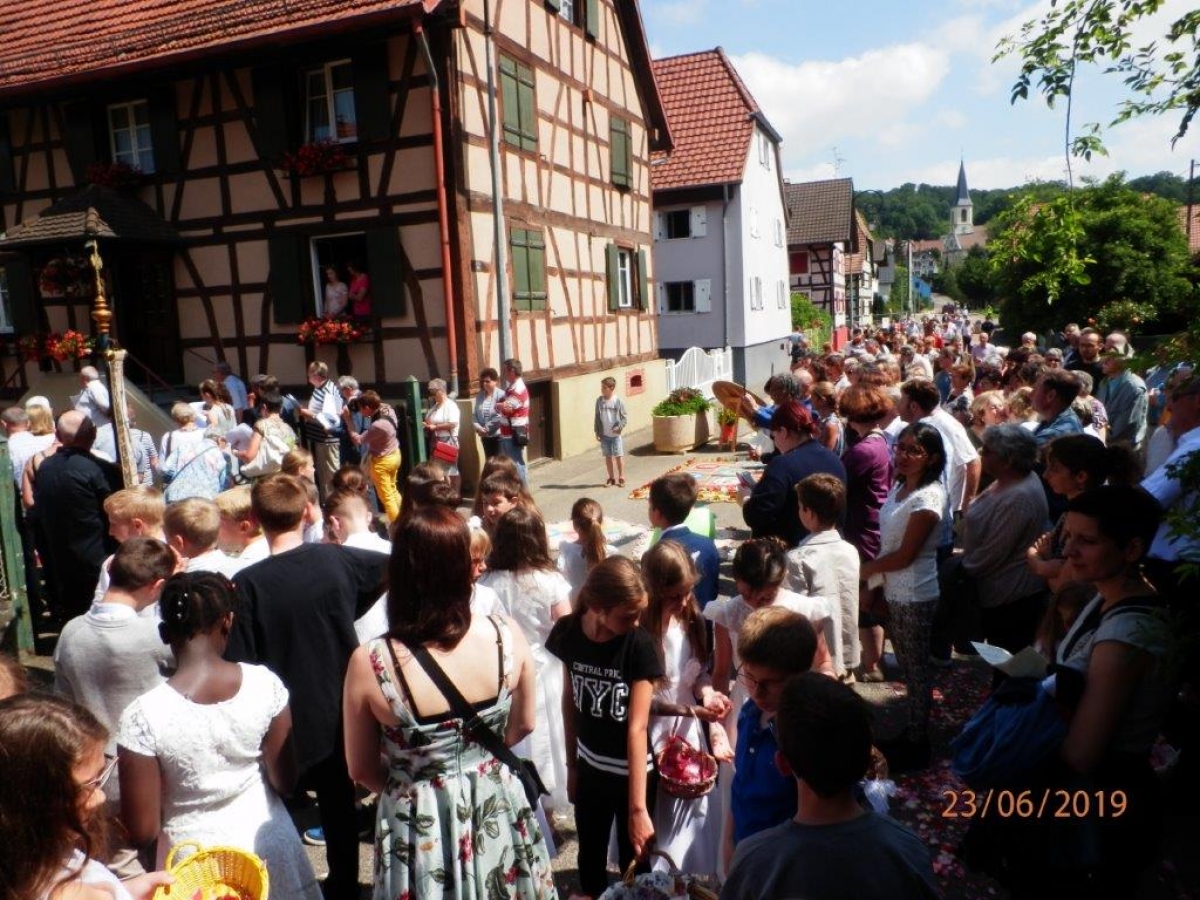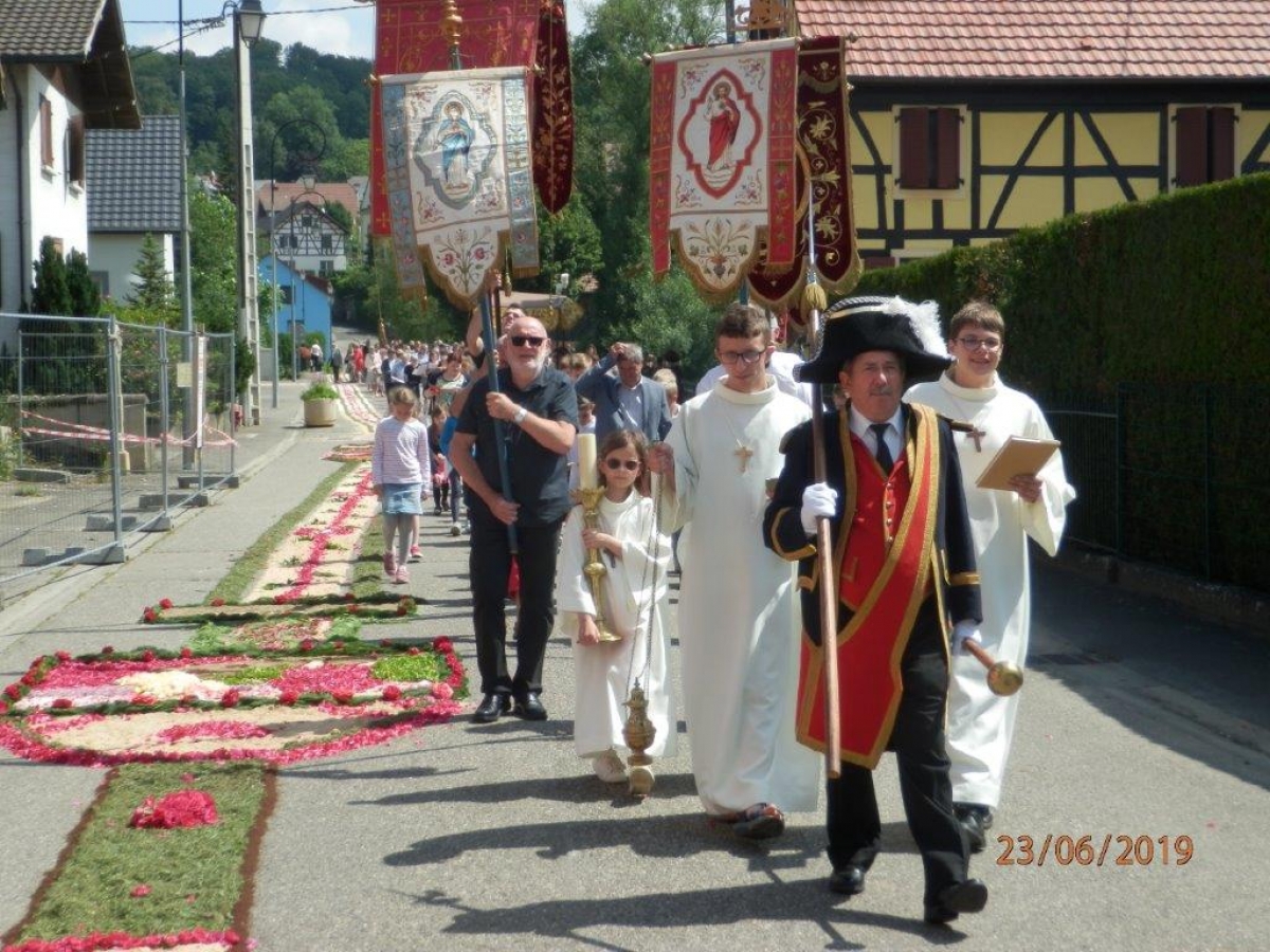 Dimanche dernier, sous un soleil radieux, la procession s'est tenue à Roppentzwiller, suivie par de nombreux fidèles. Les paroissiens bénévoles, comme chaque année, n'ont pas ménagé leurs efforts pour rendre cette fête toujours aussi belle et haute en couleur. Merci à toutes et tous et à l'année prochaine.