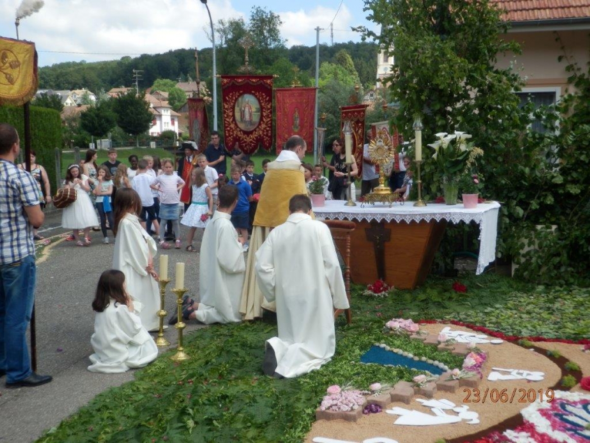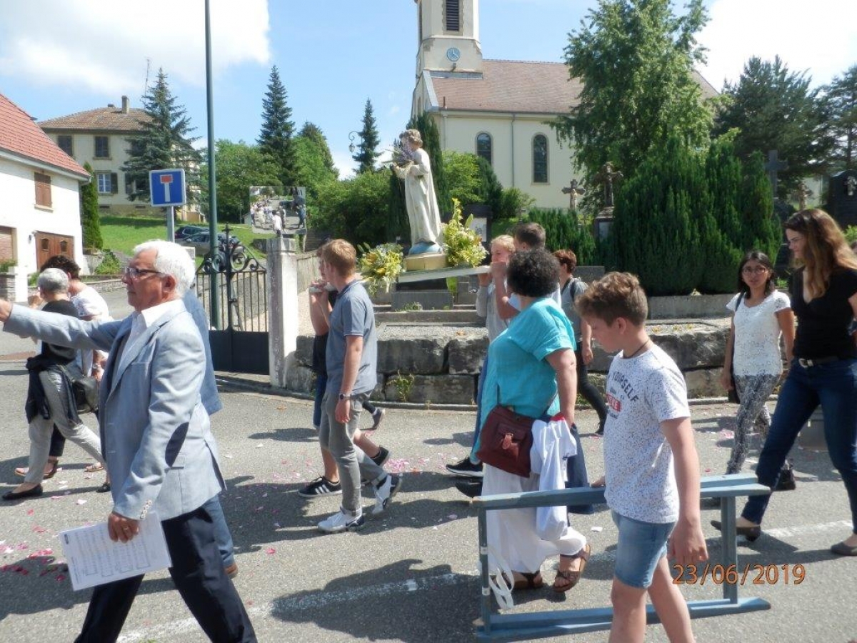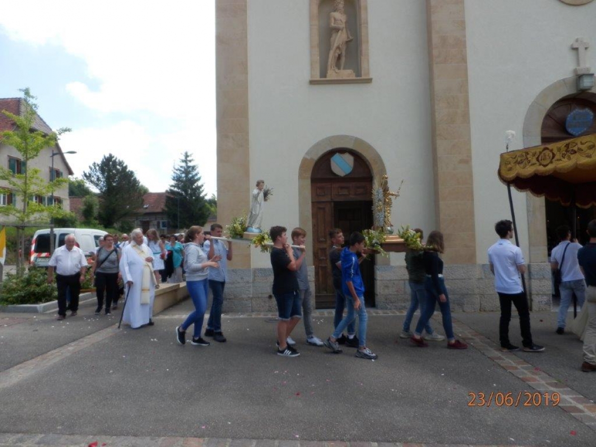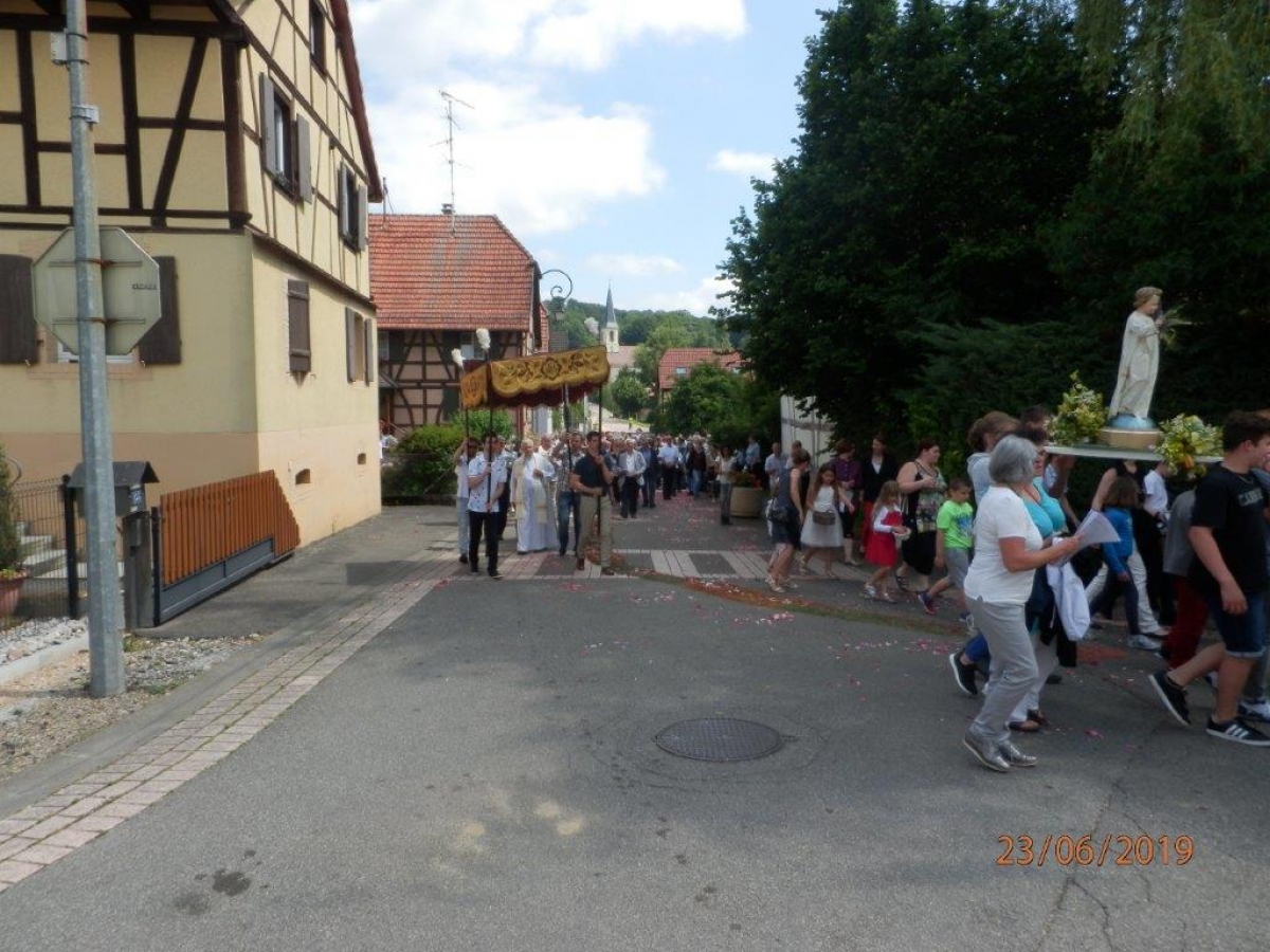 Dimanche dernier, sous un soleil radieux, la procession s'est tenue à Roppentzwiller, suivie par de nombreux fidèles. Les paroissiens bénévoles, comme chaque année, n'ont pas ménagé leurs efforts pour rendre cette fête toujours aussi belle et haute en couleur. Merci à toutes et tous et à l'année prochaine.