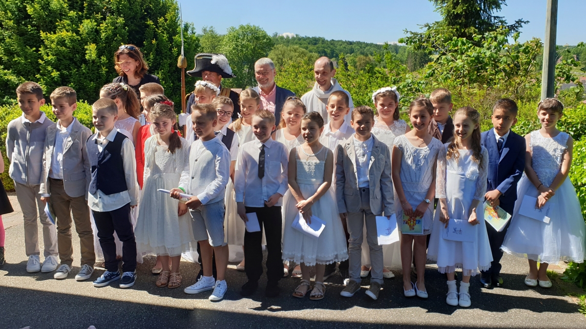 En raison du nombre important d’enfants, la première communion a eu lieu à la fois à Roppentzwiller, le 2 juin, pour 22 d’entre eux, et à Muespach, le 16 juin 2019, pour 16 d’entre eux.