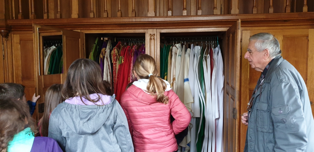 Au cours de leurs rencontres de catéchèse, le mercredi, les enfants ont pu bénéficier d'une visite approfondie de la sacristie, par Jean Nussbaumer, pour qui elle n'a plus de secrets !