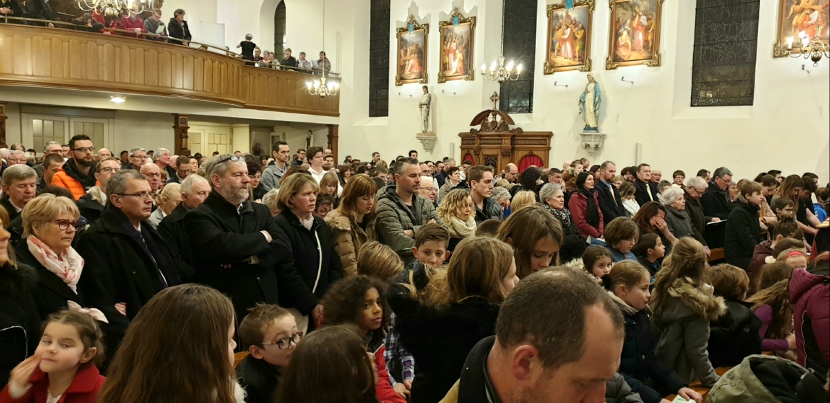 Une assemblée nombreuse, composée essentiellement d'enfants et de jeunes, et de leurs parents, était réunie à Roppentzwiller, à l'occasion de la messe de la veille de Noël.