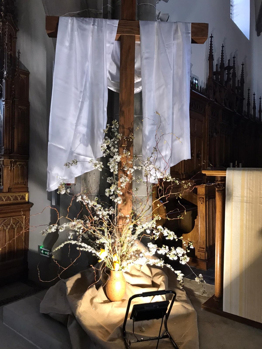 Cette flamme est celle du cierge pascal qui, au cours de cette nuit, a brillé dans l’église de Waldighoffen où la Veillée pascale a été célébrée en grande communion avec chacun d’entre vous.