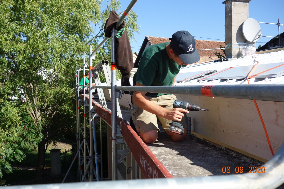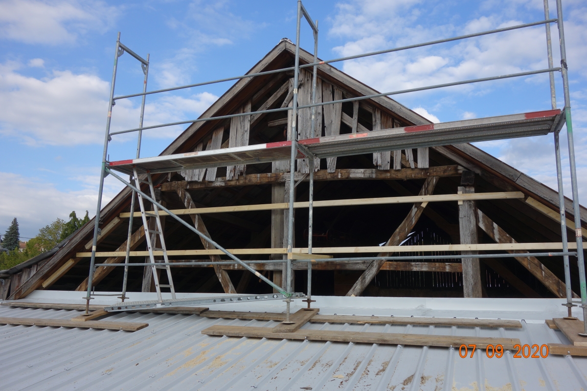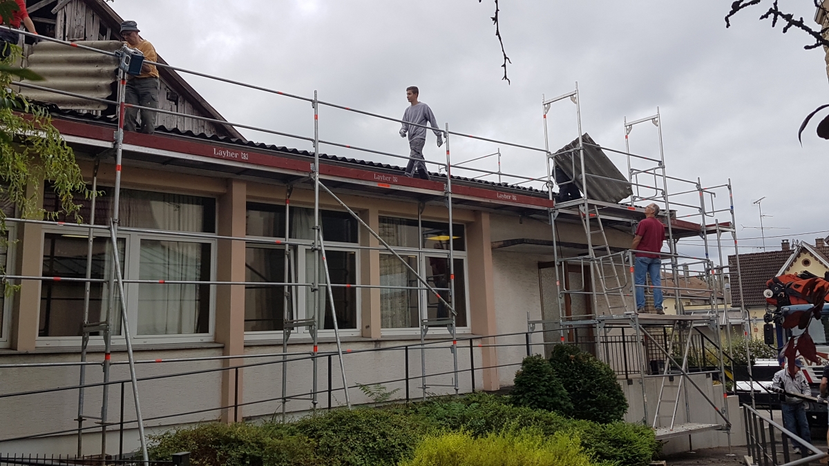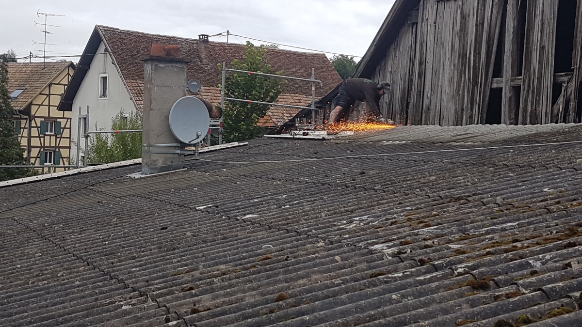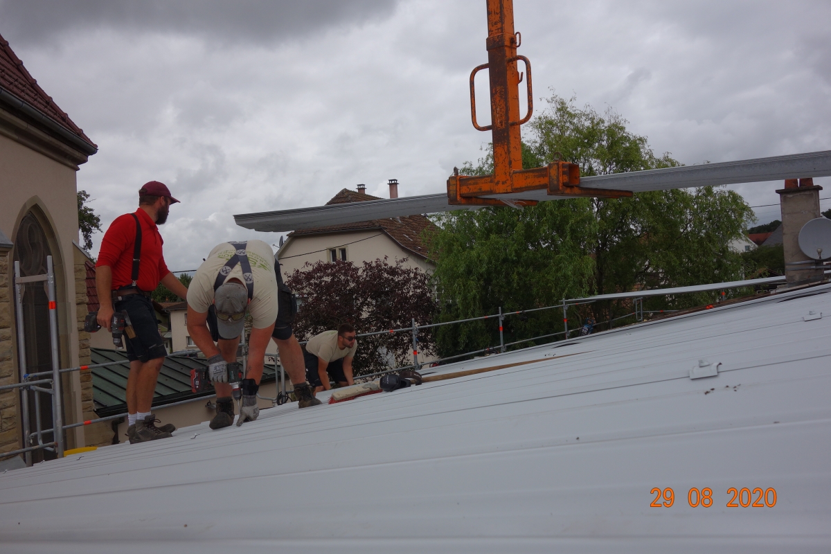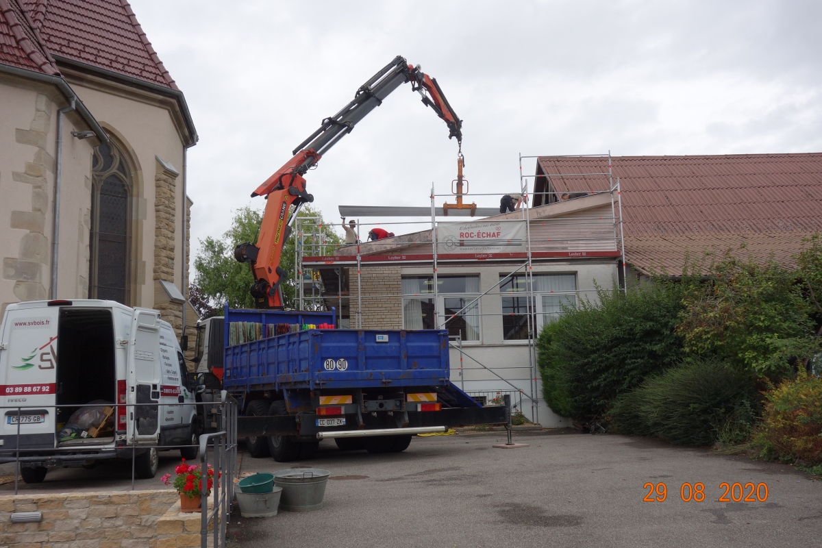 La première tranche de la rénovation du foyer paroissial de Waldighoffen (renouvellement de la toiture, isolation des combles, reprise des gouttières, habillage des rives et du bardage existant), pour un montant d’environ 26000 €, est en cours de réalisation. Cette rénovation est effectuée par une société sundgauvienne, dans le souci de faire travailler une entreprise locale. Lors de la dépose du toit, le Conseil de fabrique ainsi que des bénévoles ont prêté main forte à cette entreprise afin de mettre rapidement hors d'eau le bâtiment. Ce foyer, construit dans les années 1960, présente, depuis quelque temps, un problème récurrent d’étanchéité suite à la dégradation de son toit. Sans action de notre part, nous n’aurions plus pu y accueillir de manifestation inter-paroissiale.