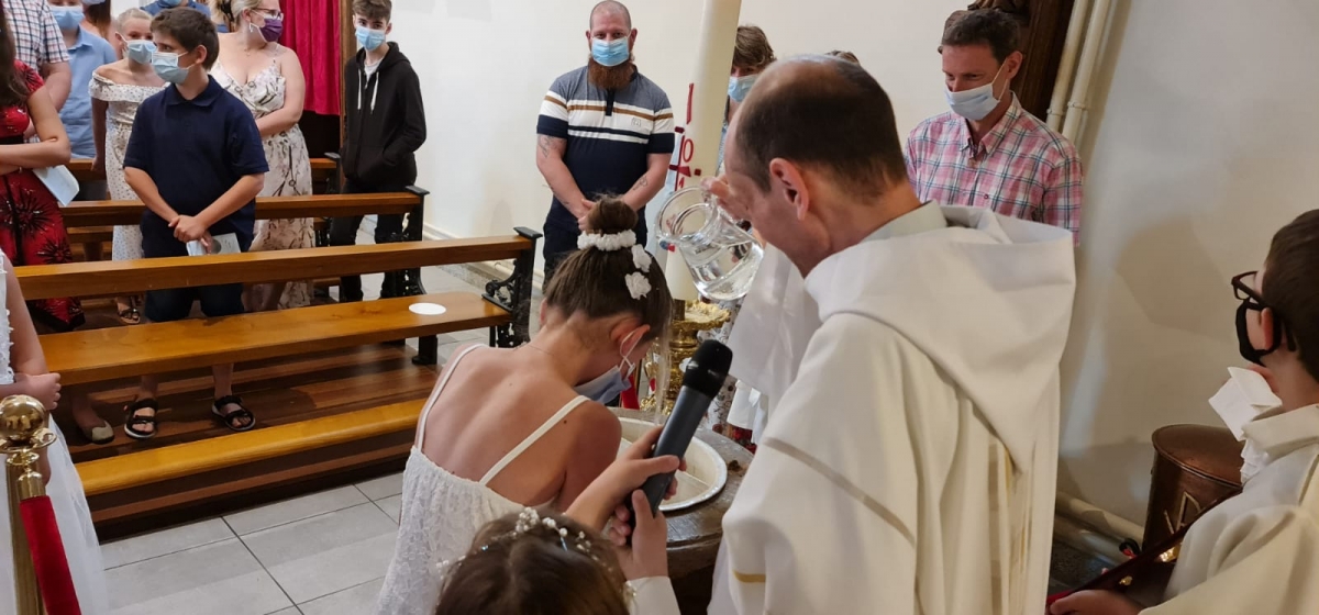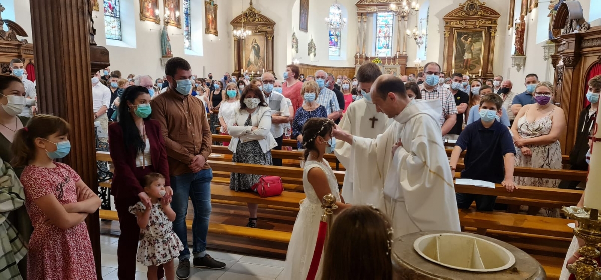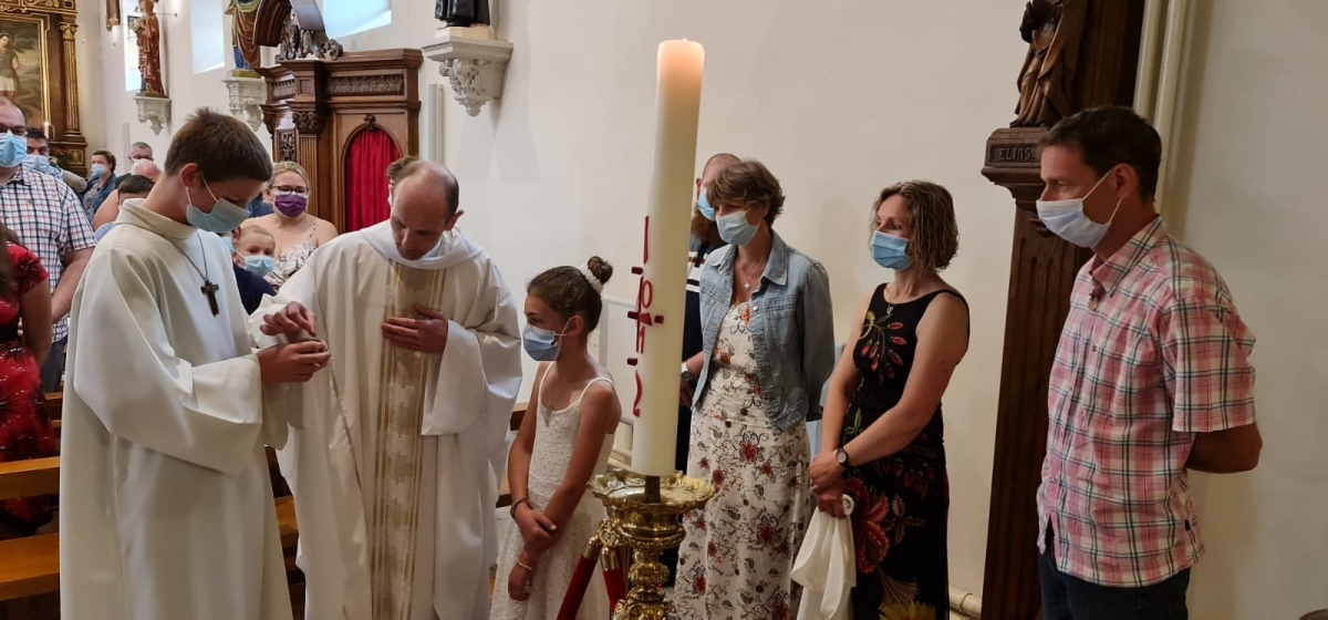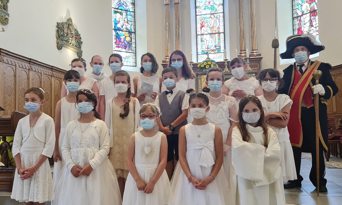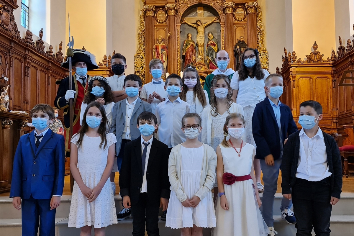 En juin, c'est la première communion prévue cette année qui a été célébrée, après que les rencontres aient repris durant l'été dernier, en vue du premier pardon, et qu'elles aient dû être adaptées à plusieurs reprises aux diverses mesures sanitaires et aux confinements successifs, si bien que certaines n'ont finalement eu lieu qu'à distance.