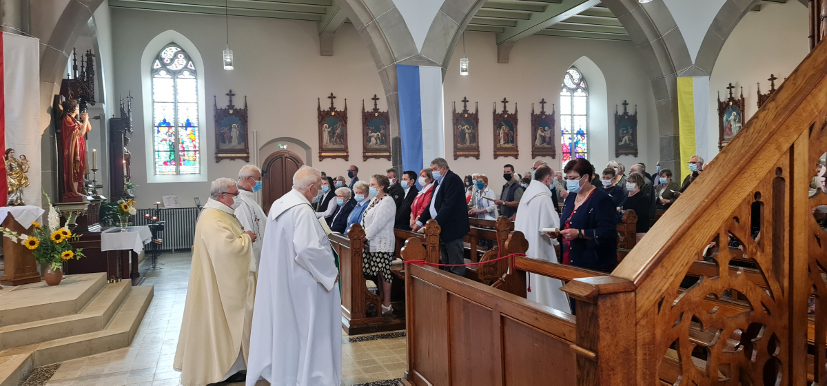 Le Père Hubert Schmitt, originaire de Waldighoffen, a fêté, dimanche 8 août, en présence des membres de sa famille et de toute la communauté de paroisses, les 40 ans de son ordination et de sa première messe qu’il avait célébrée, ici, dans l’église de son village.